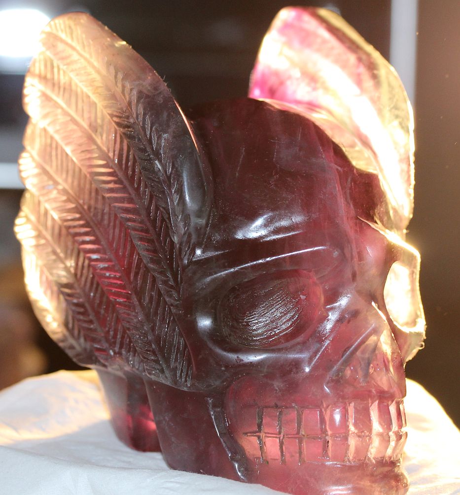 FLUORITE Carved Wing Skull