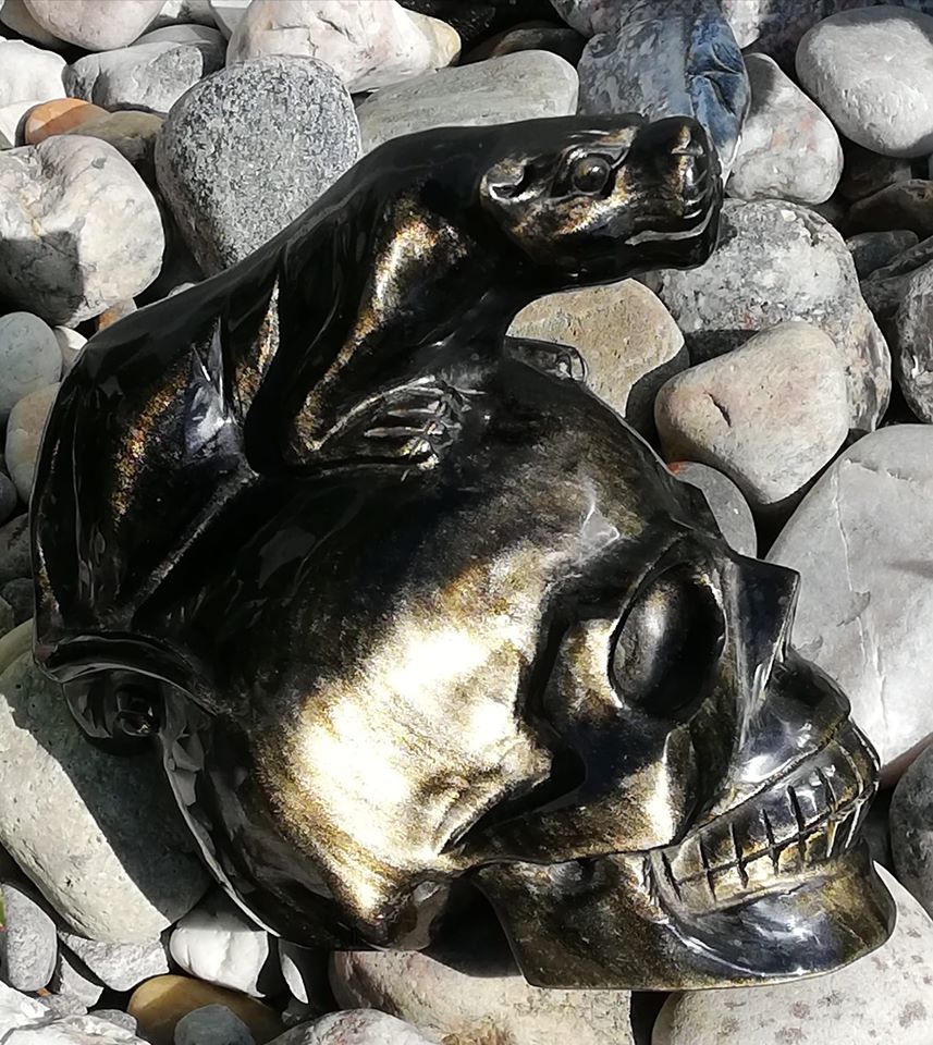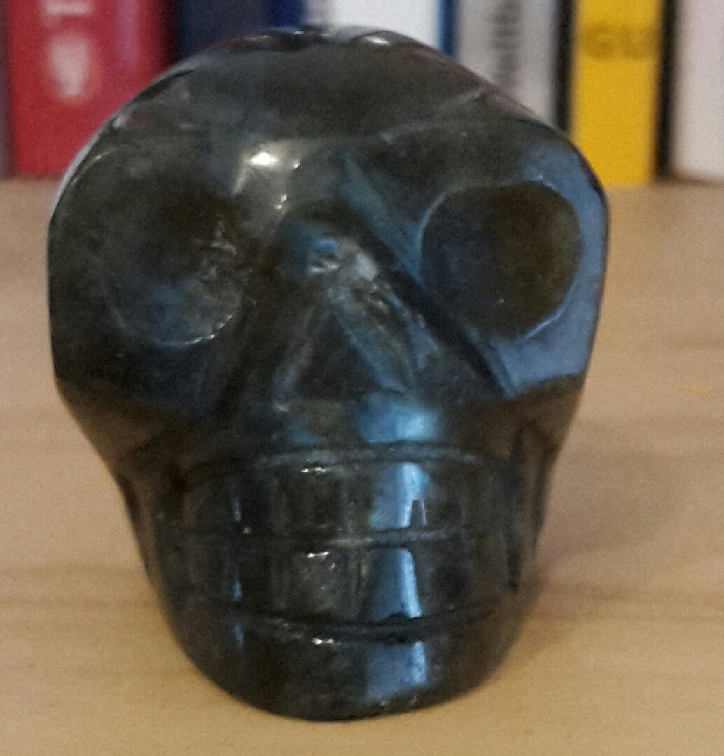 Hier sind so viele schöne Bilder von den Kristallschädel drin hab zwar kein so tolles Bild mit älterem Smartphone hinbekommen möchte meinen ersten Schädel aber doch mal zeigen. Hatte ihn länger in der Hand als ich ihn bekam da verriet er mir per Eingebung seinen Namen er heisst Archedon und ist ein Labradorit erfreue mich sehr an ihm dachte zuerst immer könne mit Kristallschädel nichts anfangen nun hat sich es geändert. hatte ja einen Schädel verschenkt kam gut an nur hält man mich etwas für verrückt als ich berichtete das ich auch einen habe der einen Namen hat. Haben bei euch die meisten Schädel einen Namen wie erfahrt ihr den?