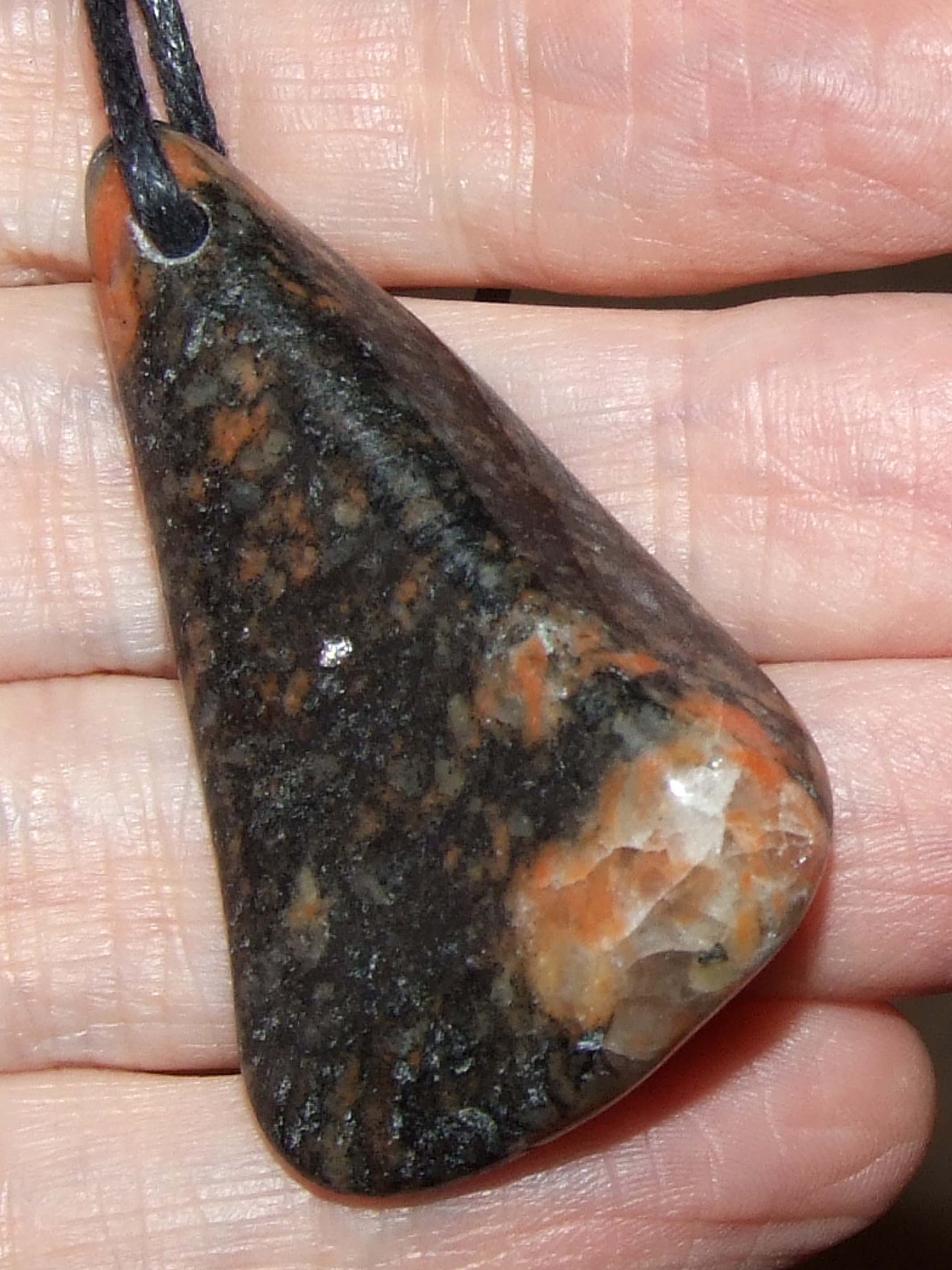 der quer ein Loch hatte und ich ihn so toll mit Lederband tragen kann