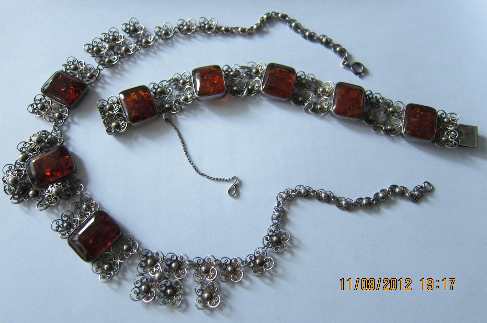 Die Kette (91 g) ist Naturbernstein und das Armband gepreßt +++#