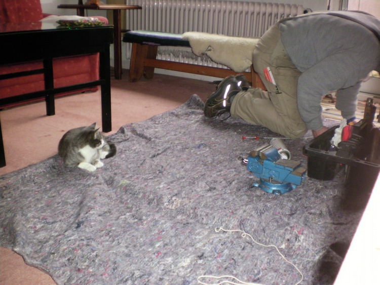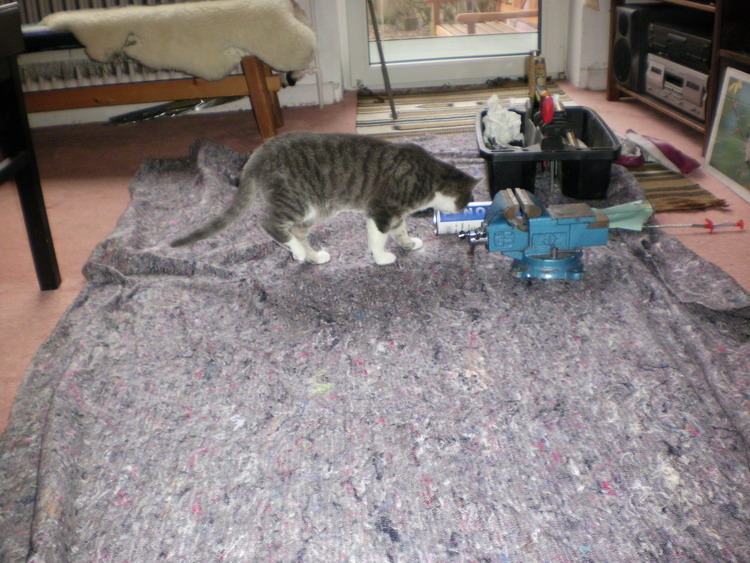 Er ist dem Handwerker regelrecht vor den Füssen rumgelaufen und Bohrmaschine war auch nicht unheimlich.