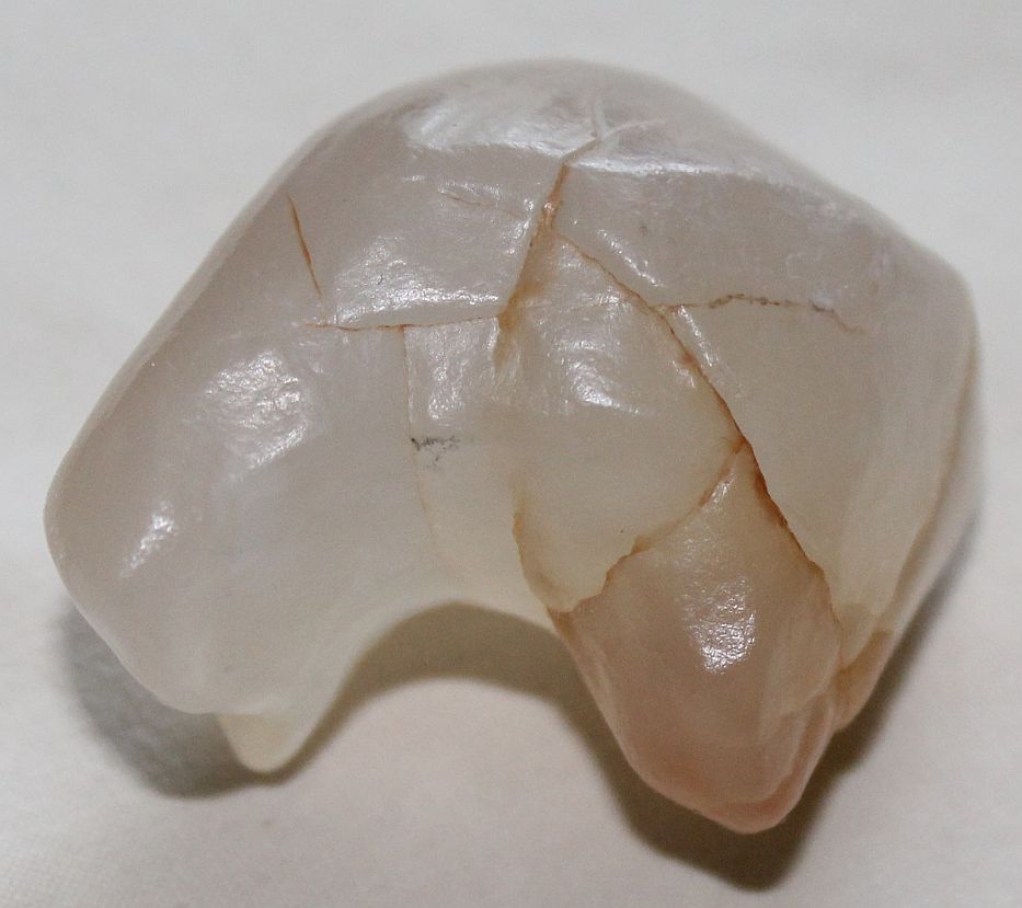 Er hat damit keine fremden Mineralsubstanzen. Solche Achate werden oft eingefärbt ,um so optisch ihren Wert zu steigern.