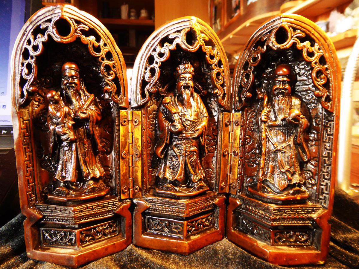 Heute Morgen frisch und richtig wach fiel es mir denn auch ein als ich meine 3 mächtigen chinesischen Götter für Gesundheit, Glück, Reichtum und langes Leben wie jeden Morgen begrüßte und berührte, Fuk, Luk und Sau, dass es einer von ihnen sein könnte. Und Bingo, es ist Sau: