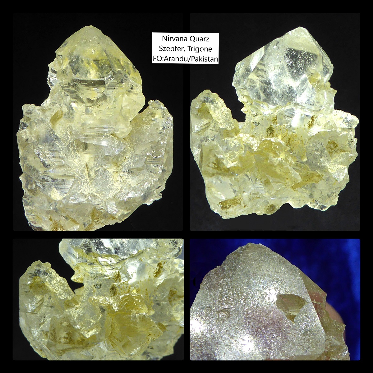 Andere Namen sind Lemurian Scalar Quarz, Himalaya-Ice Quartz sowie Wachstums gestörter Quarz/ Groth Interference Quartz
