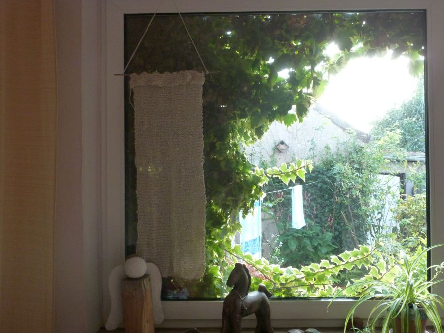 Ich habe eine Ziergardine gestrickt. Sie dient keinem weiteren Zweck als nur der Zierde