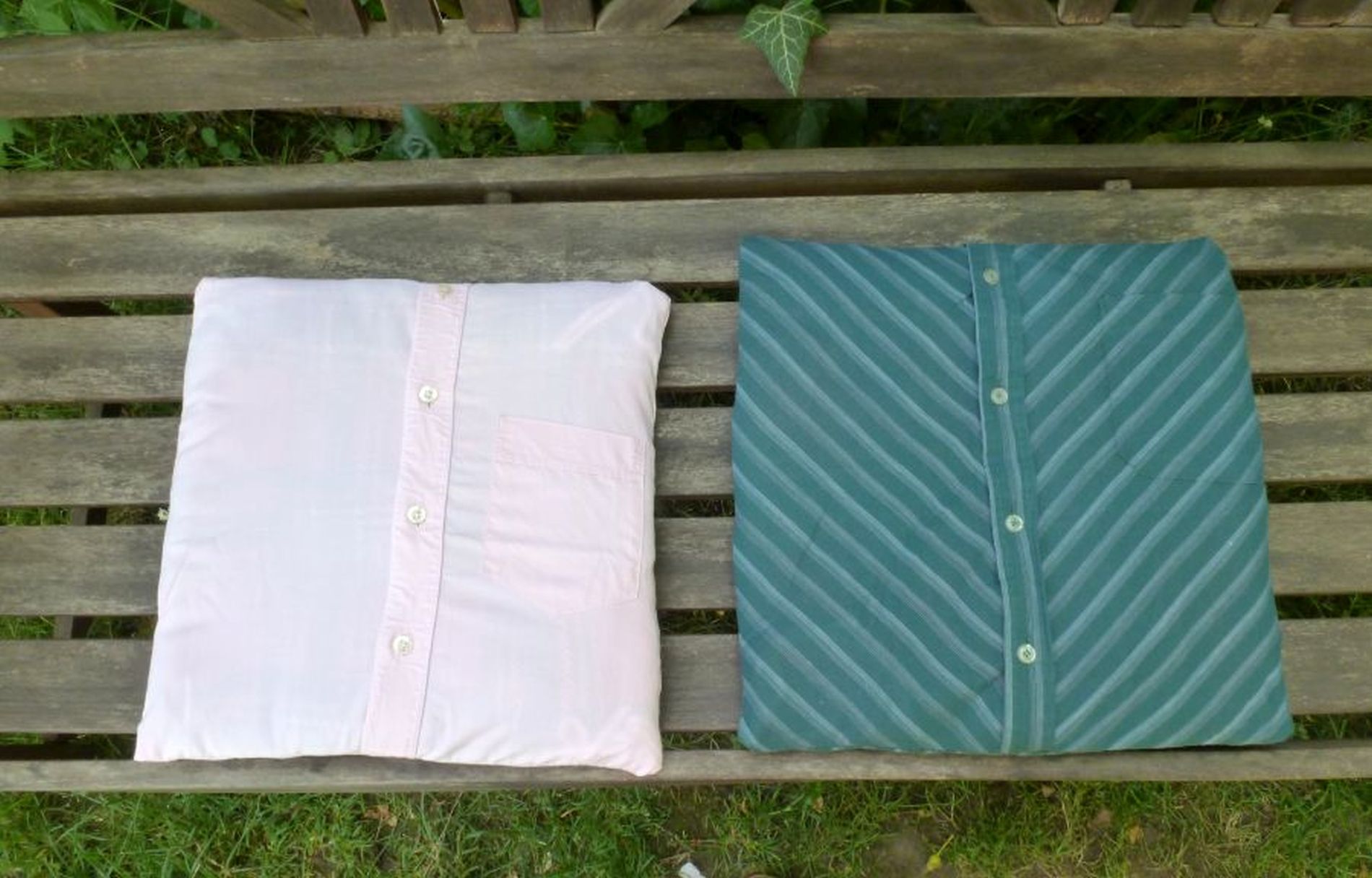 Dies waren zwei Hemden von meinem Vater. Jetzt ist er quasie wieder bei uns, wenn wir im Garten sitzen![]()