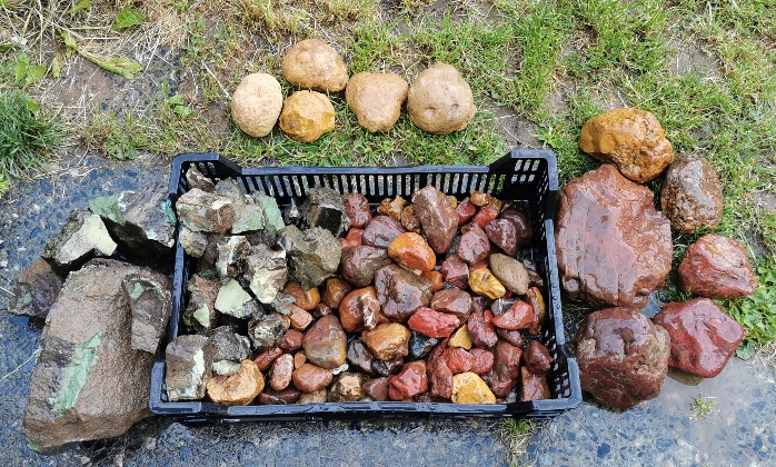 Die leeren Septarien sind irgendwie spannend, wenn natürlich auch leider nicht verwertbar. Vom Jaspis habt Ihr schöne Exemplare entdeckt.