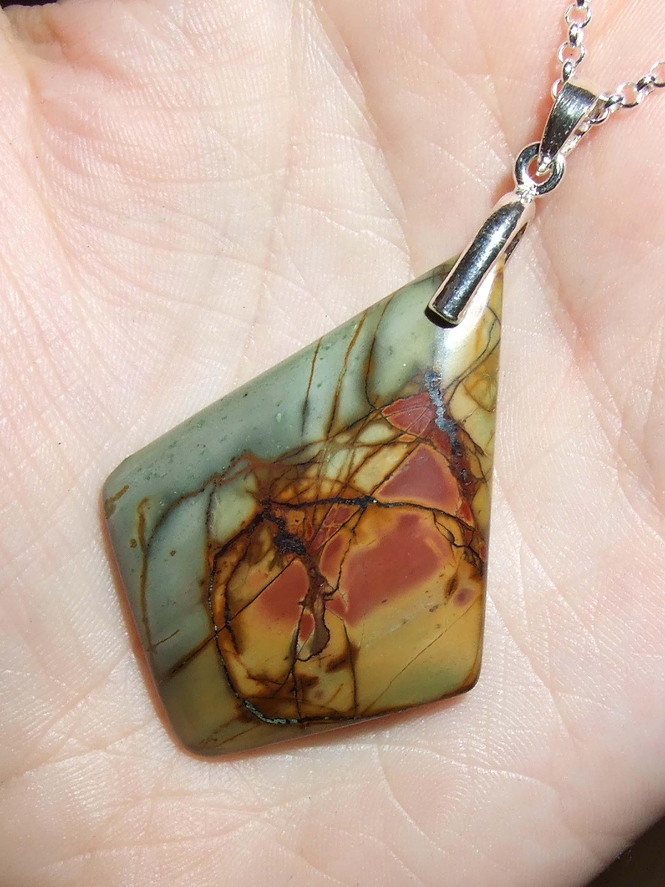 Heute durfte u.a. dieses schöne Steinchen mich begleiten. Ich mag diese tollen bunten Red-Creek-Jaspise einfach so.