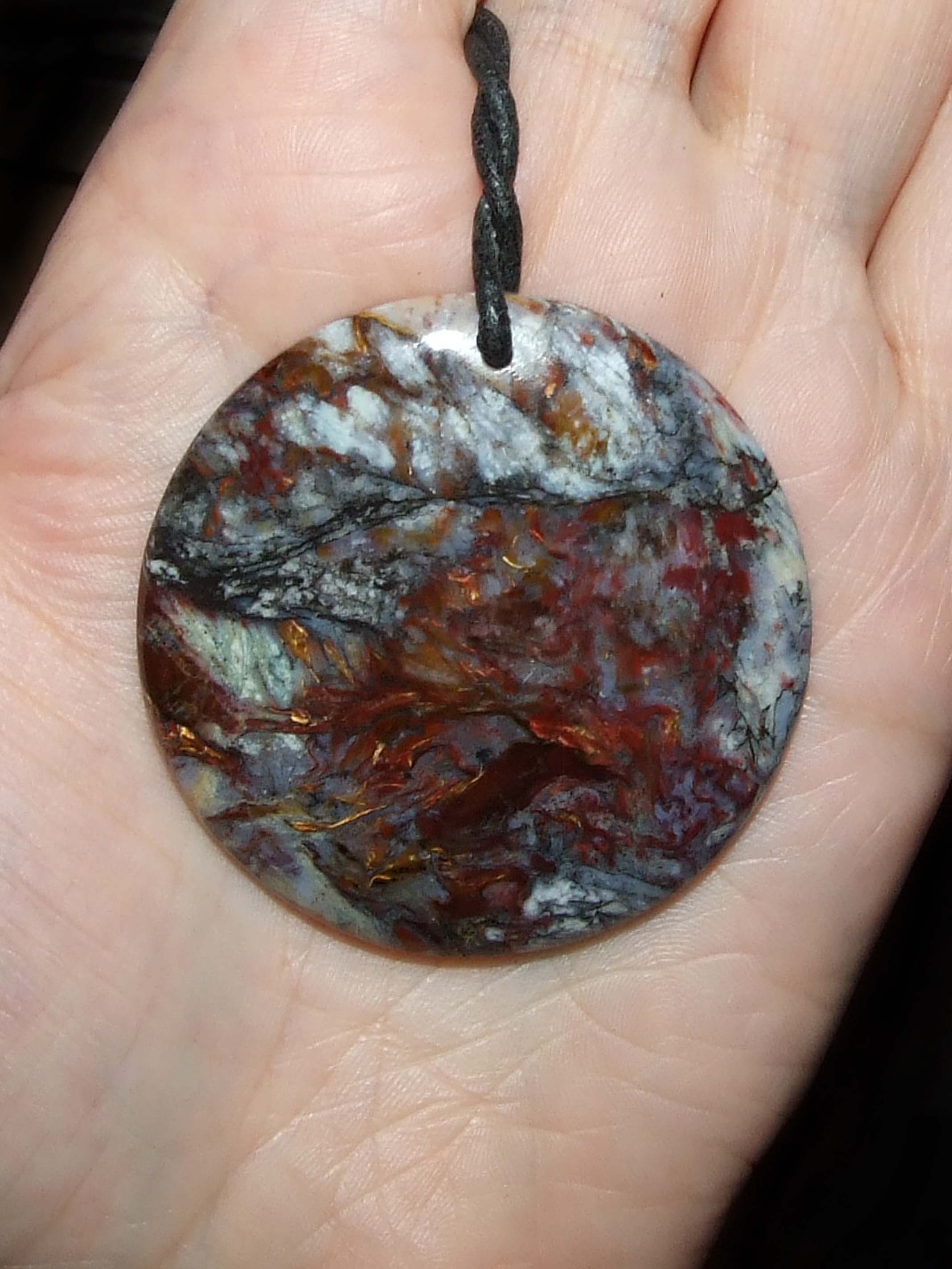 Mich hat heute u.a. ein Noreenajaspis begleitet. Ich mag diese Steinart einfach sehr und auch die Formen dieser Anhänger.