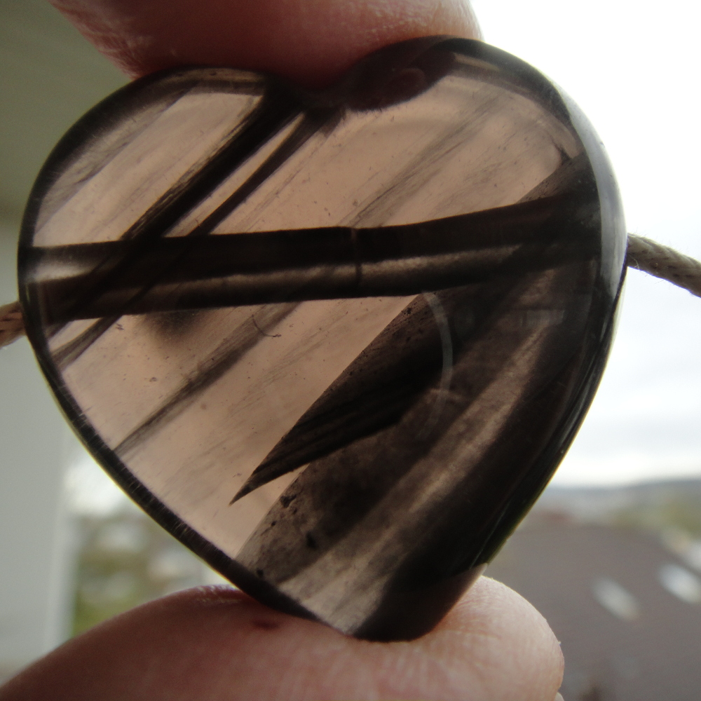 Heute wieder den Schörl und mein Lamellenobsidianherz, das ich mir mal selber geschenkt habe zu Weihnachten.