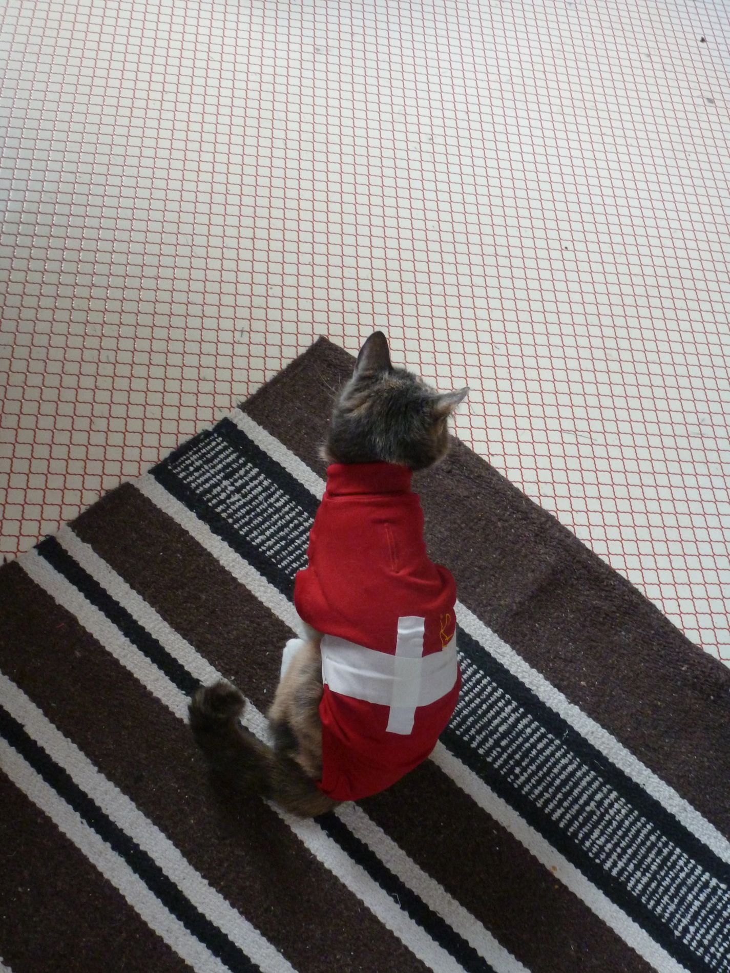 Morgen werden die Fäden gezogen. Wird aber auch Zeit, die Katze fängt an zu müffeln......Sie kann sich ja nicht putzen.....![]()