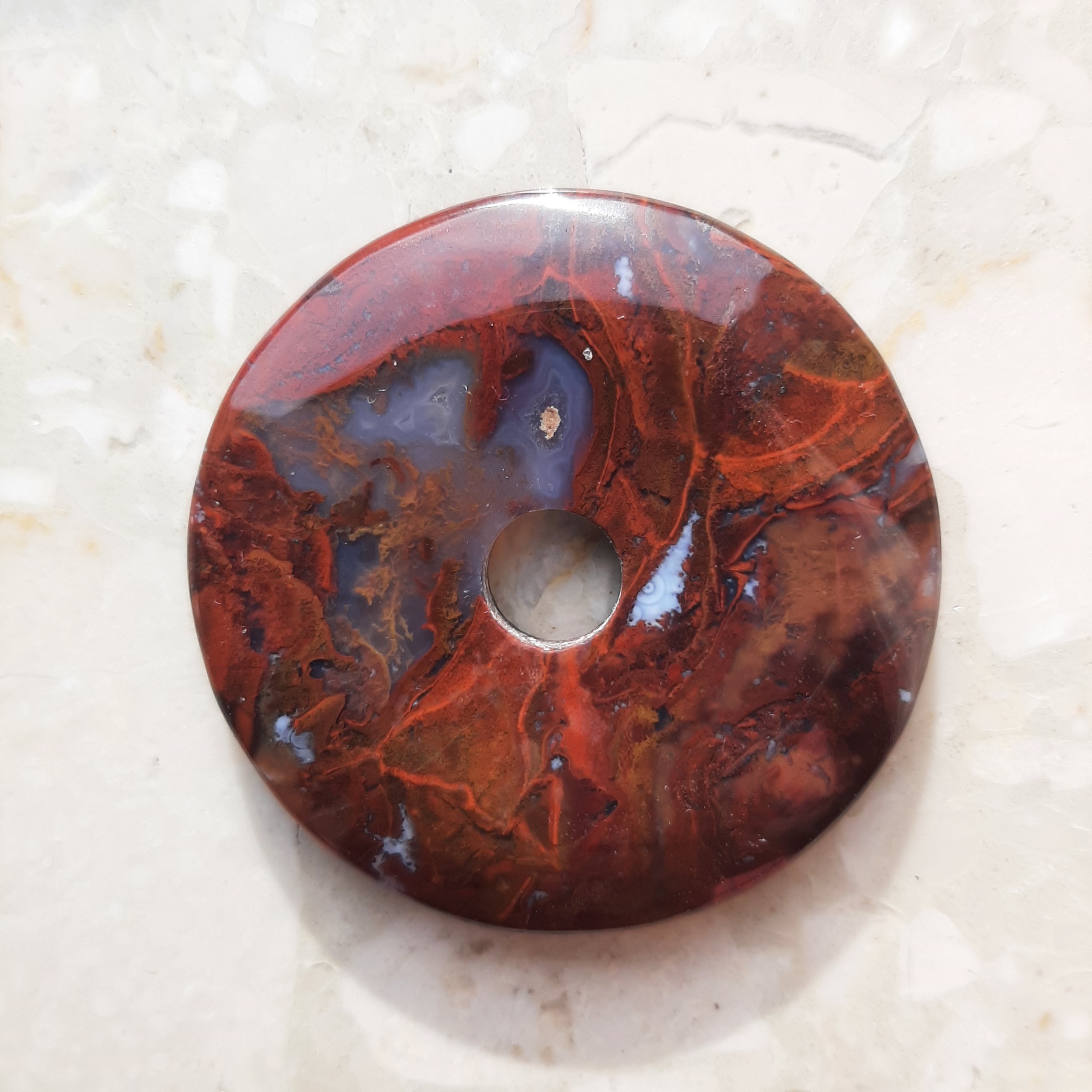 Ich trage meinen größten Jaspis-Chalcedon, weil er mich aufmuntert, wenn es draußen trüb ist.