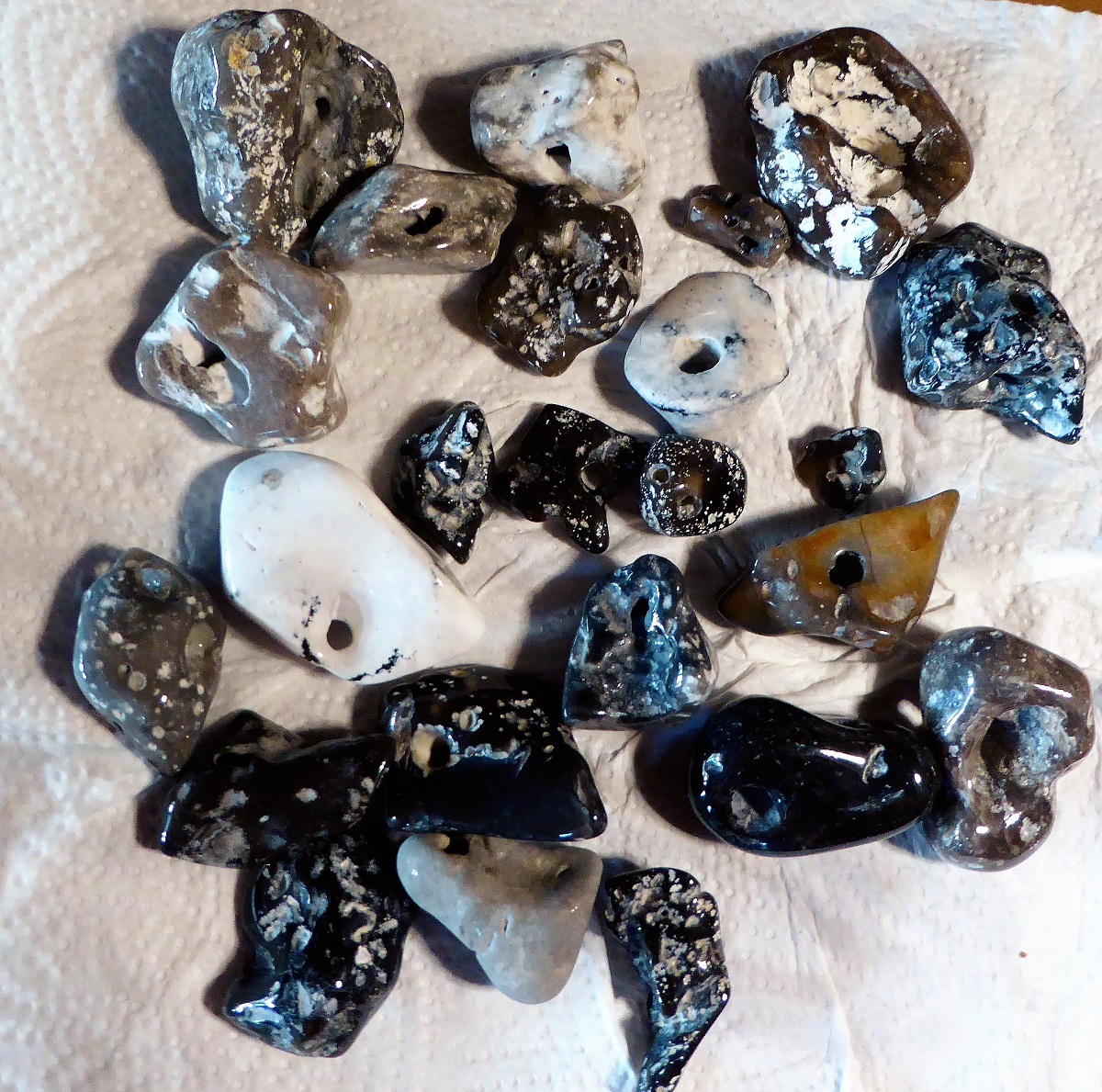 Ja das sind auch feuersteine, wunderbare handschmeichler, die beiden könnte man auch gut zu anhängern machen, tropfenförmig