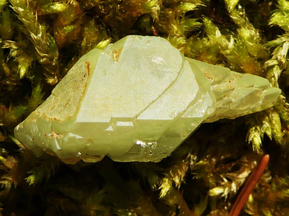 Dieser Quarz enthält Epidot in feiner Verteilung, sozusagen farbgebend oder in Form von stangenförmigen Einschlüssen.