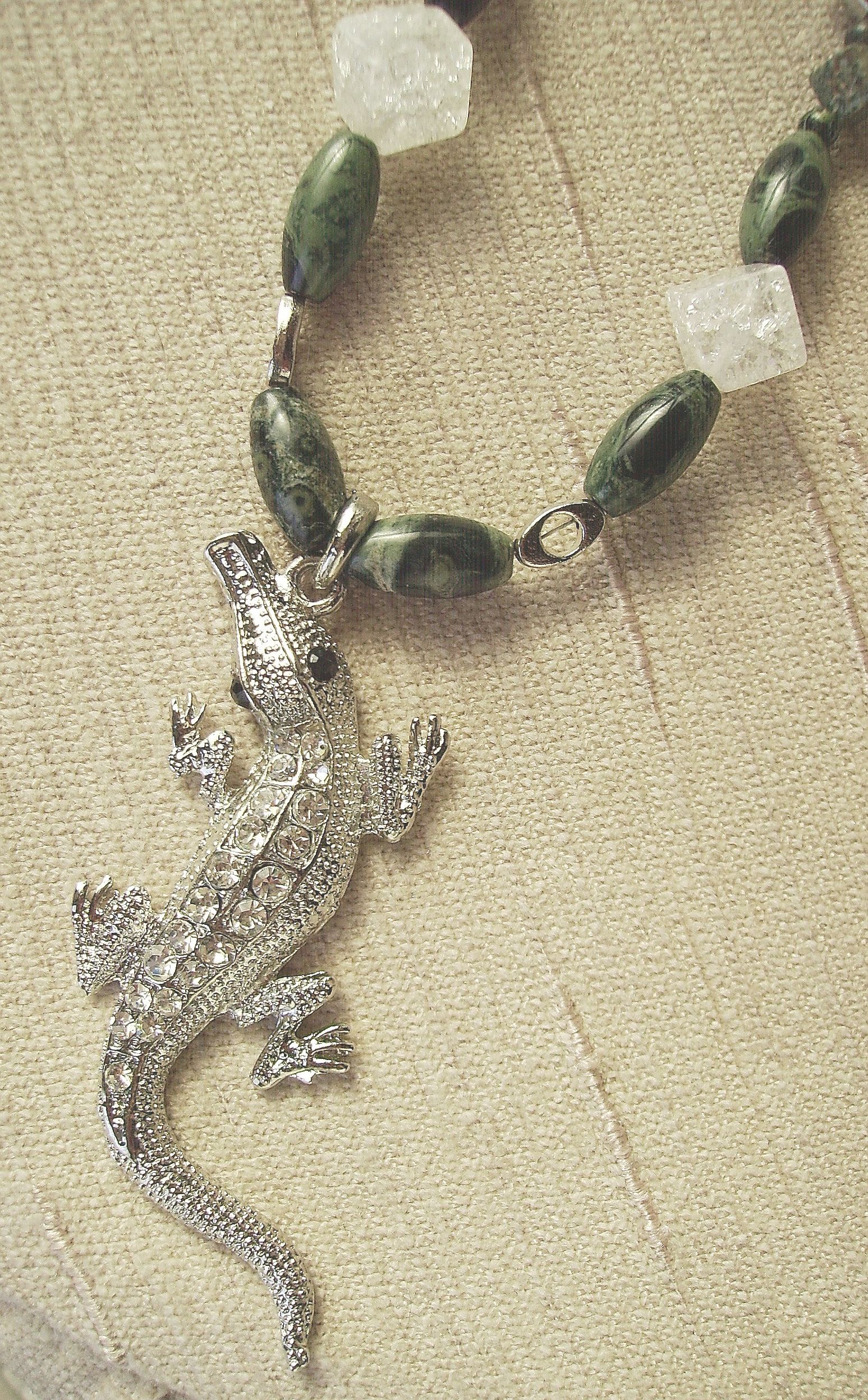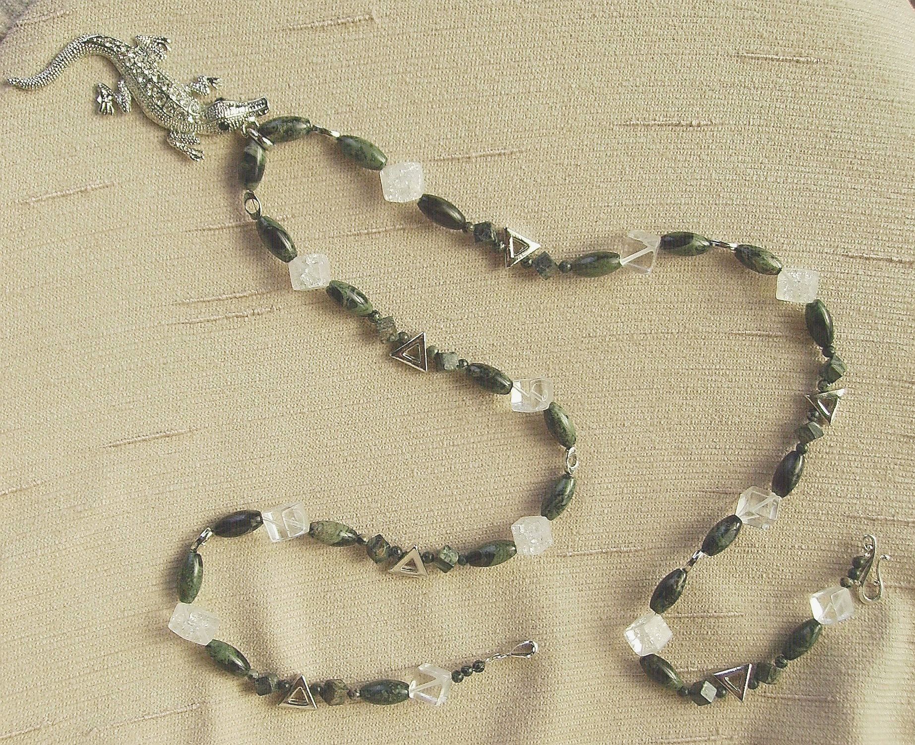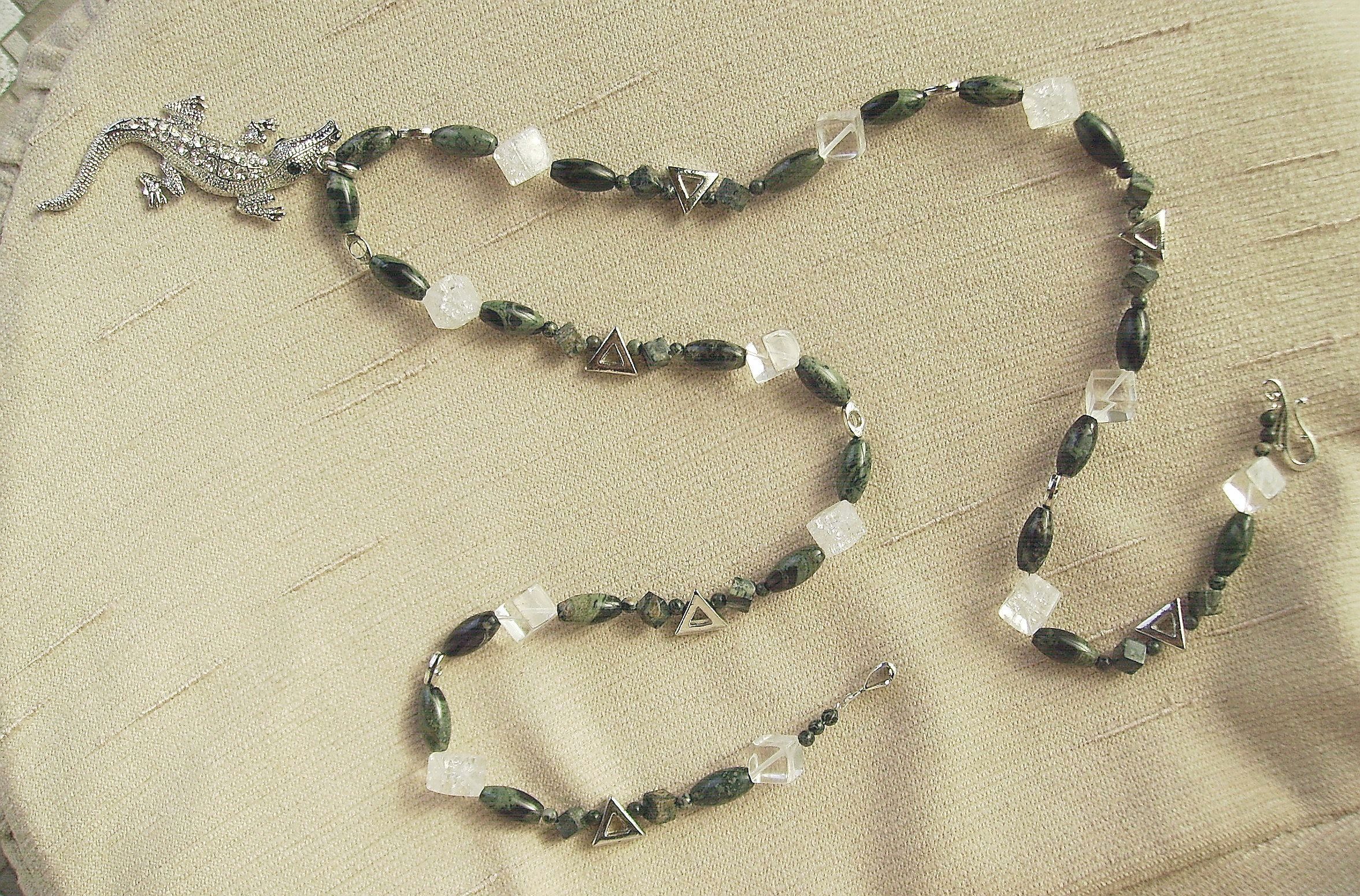 aus Kambaba-Jaspis und Bergkristall habe ich mir 'ein Krokodil zum Küssen' gekettelt