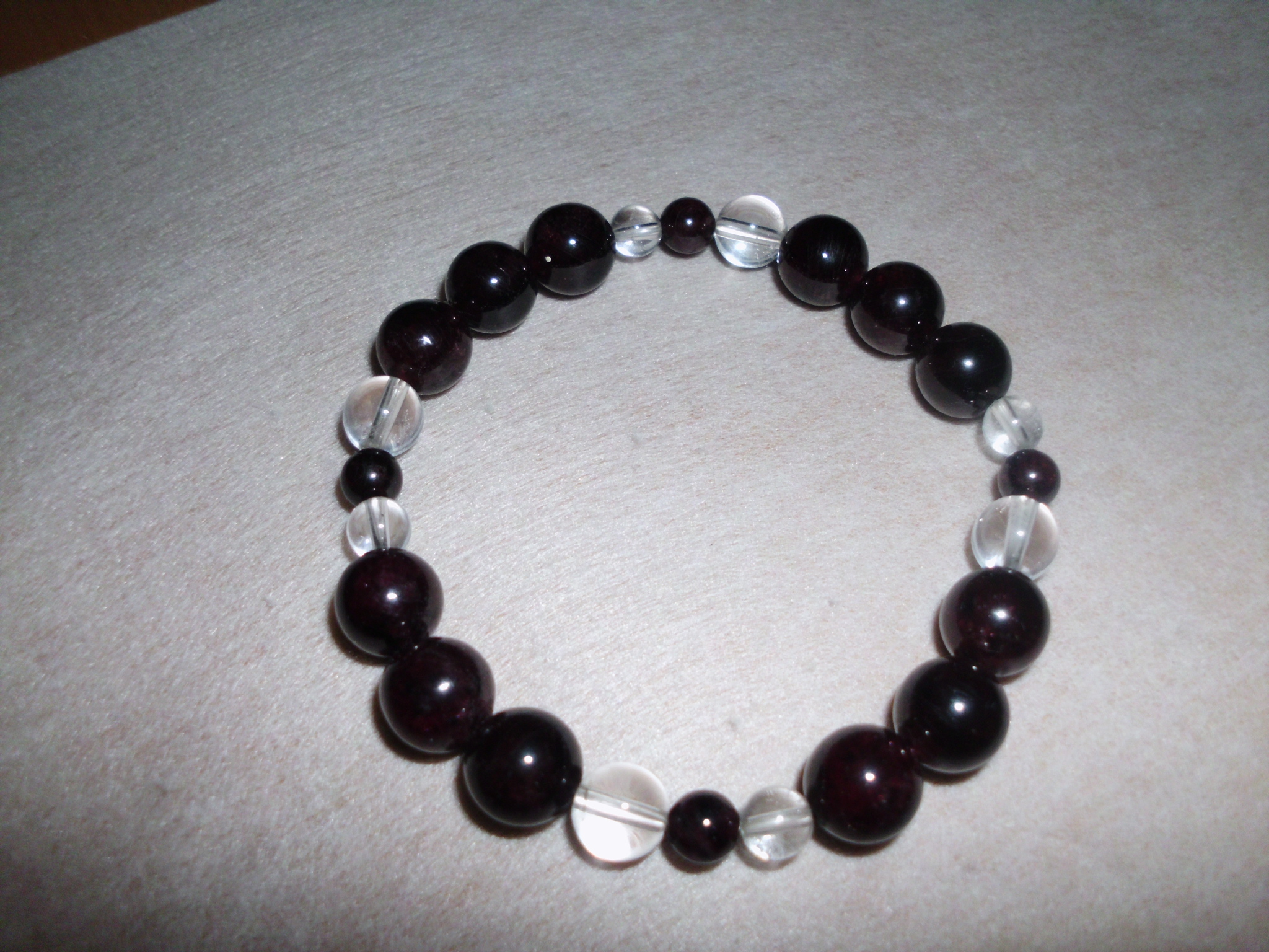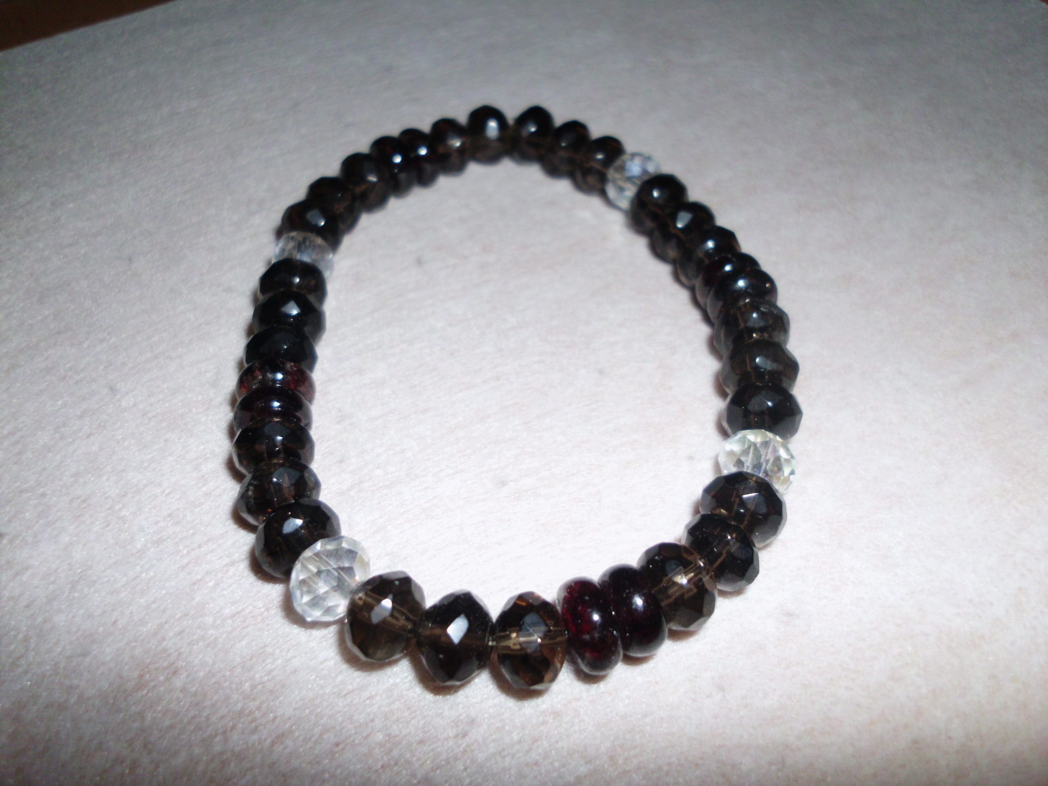 Die Kombination Rauchquarz/Granat/Bergkristall habe ich neulich für eine Kollegin gemacht, sie liebt es und trägt es jeden Tag.