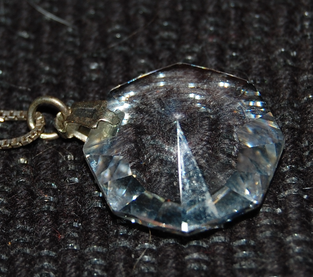 Der Anhänger kann sowohl ein Bergkristall aber auch Bleiglas sein. da würde zwar eine Ritzprobe helfen. wenn du mit dem Stück