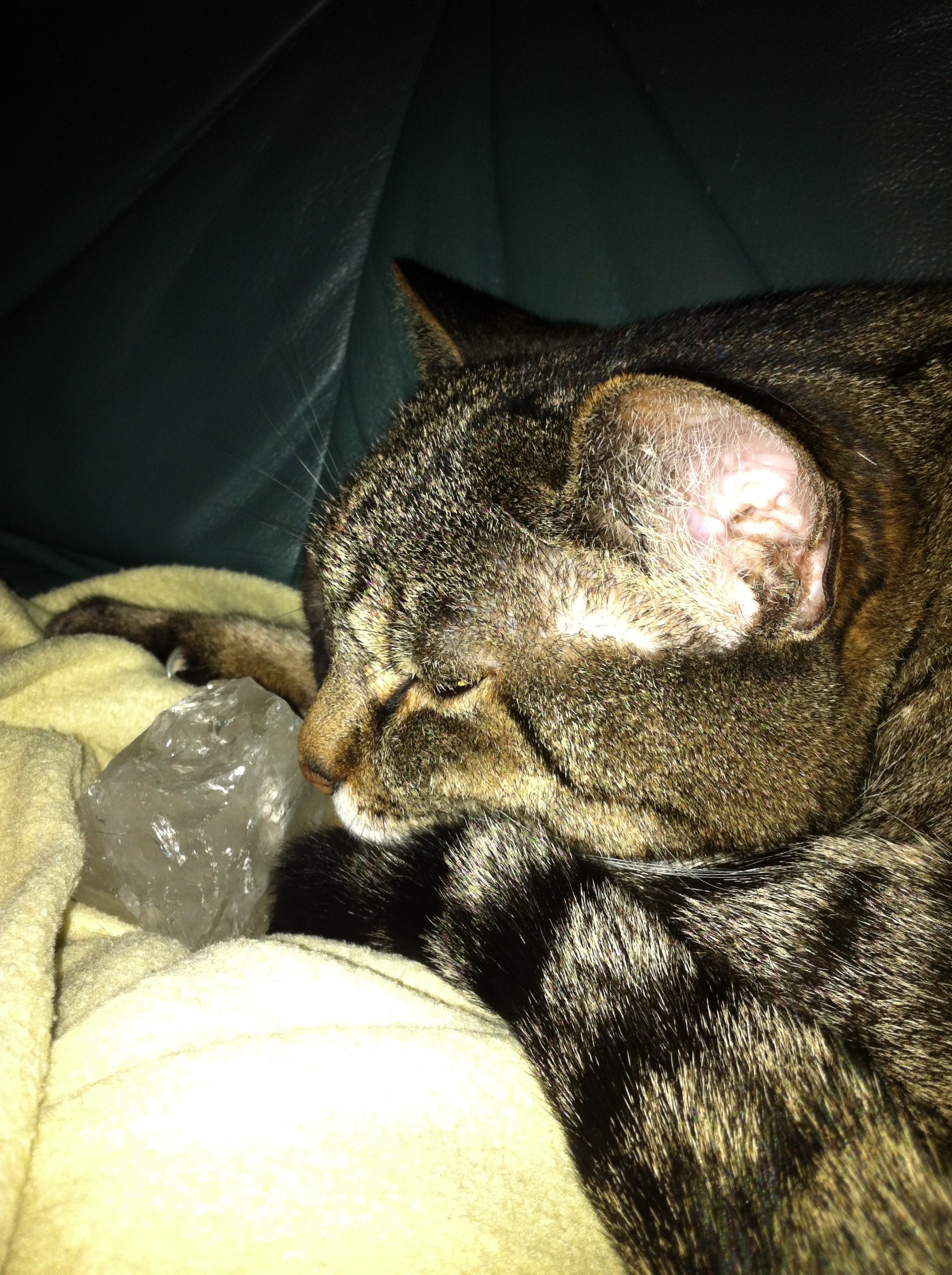 ..mein Miezle hat am letzten Wochenende dieses kleine Stücken Bergkristall bekommen, sie ist nachts aufgrund des Alters sehr unruhig....