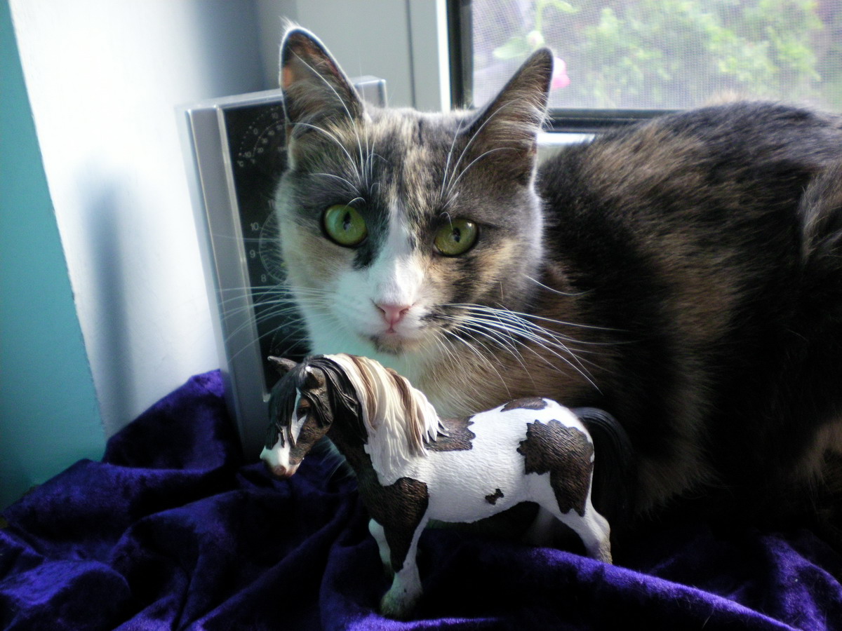 ui, schönes miezle..tolle musterung im gesicht... gefällt mir gut +## und anscheinend mag sie pferde?;)