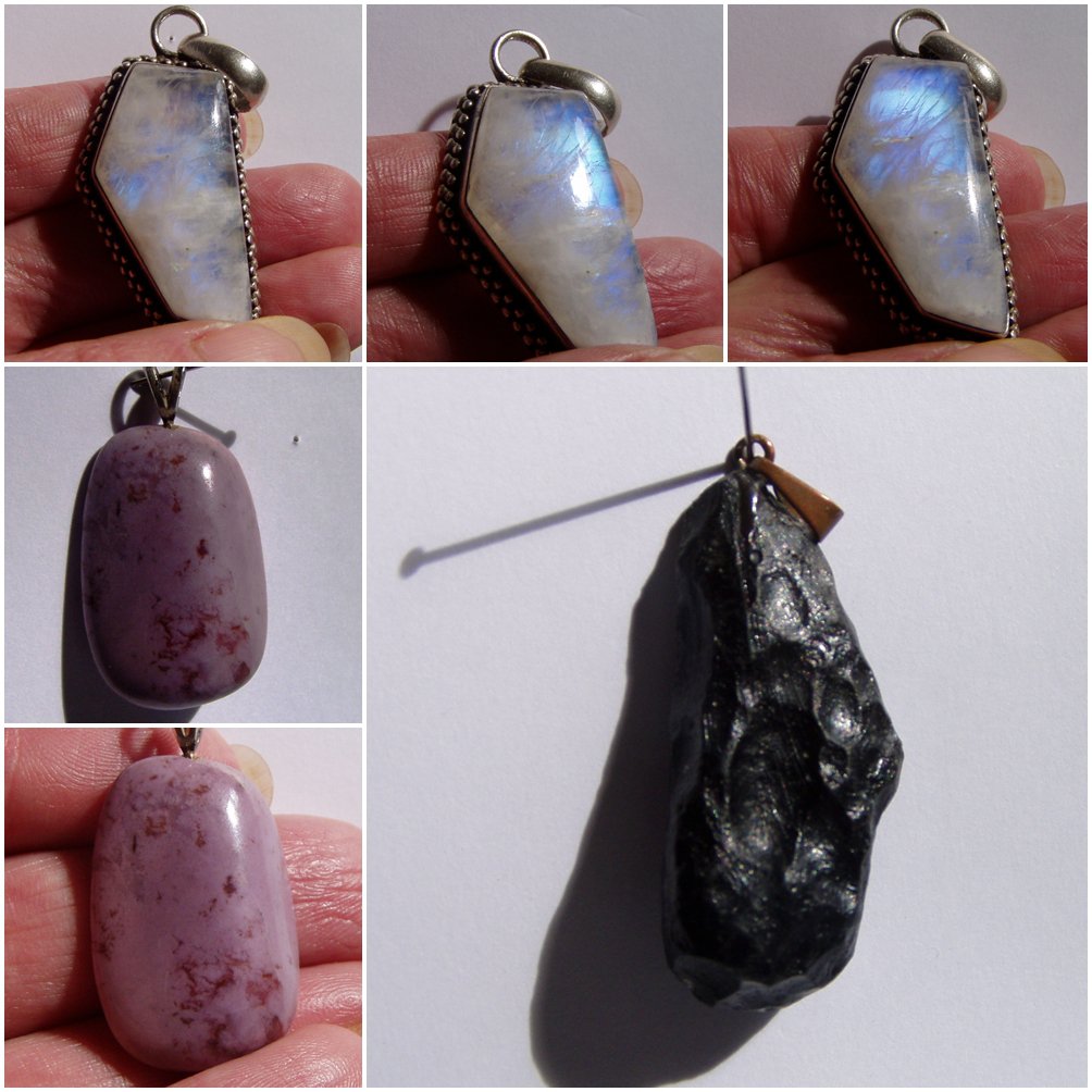 oben Mondstein, seitlich Lavendeljade, groß Tektit