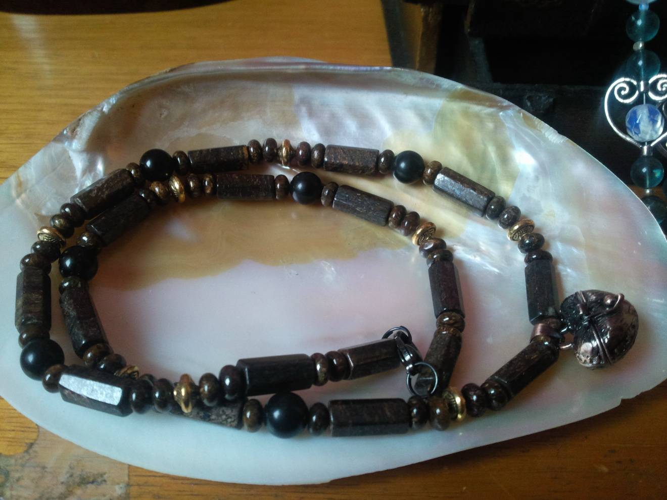 Ja Bronzitwalzen und Onyxperlen (lieblingsteine meines Hasis) eine ähnliche hatte unser liebes Antchen mal für sich selbst aus Bronzit und Lava gemacht, als mein Hasi die gesehen hatte fing er an zu schwärmen naja und Fraule hatte nix besseres zu tun als Antchen zu fragen ob sie so eine nochmal extra eine für ihn macht und hat sie auch die LiebeAchaty hat geschrieben:Schöne Werke, ein teil kannte man glaube ich schon.Das tolle Spiral Armband.