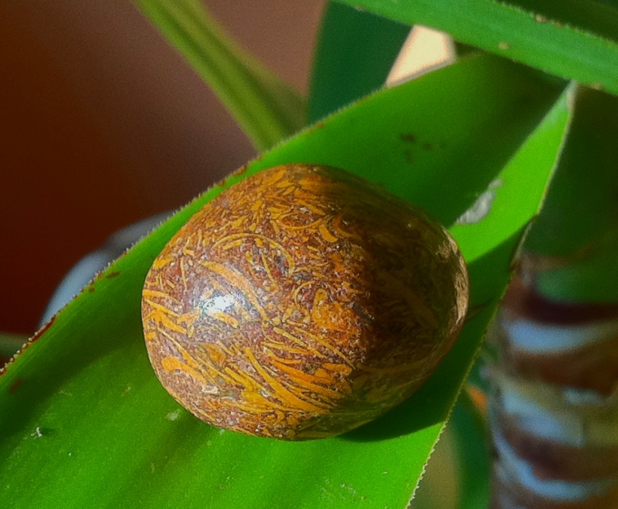 Der erste ist in Wirklichkeit noch kräftiger dunkelbraun in der Grundfarbe und relativ ist rund von der Form. Außerdem wirkt er eher matt, nicht glänzend.