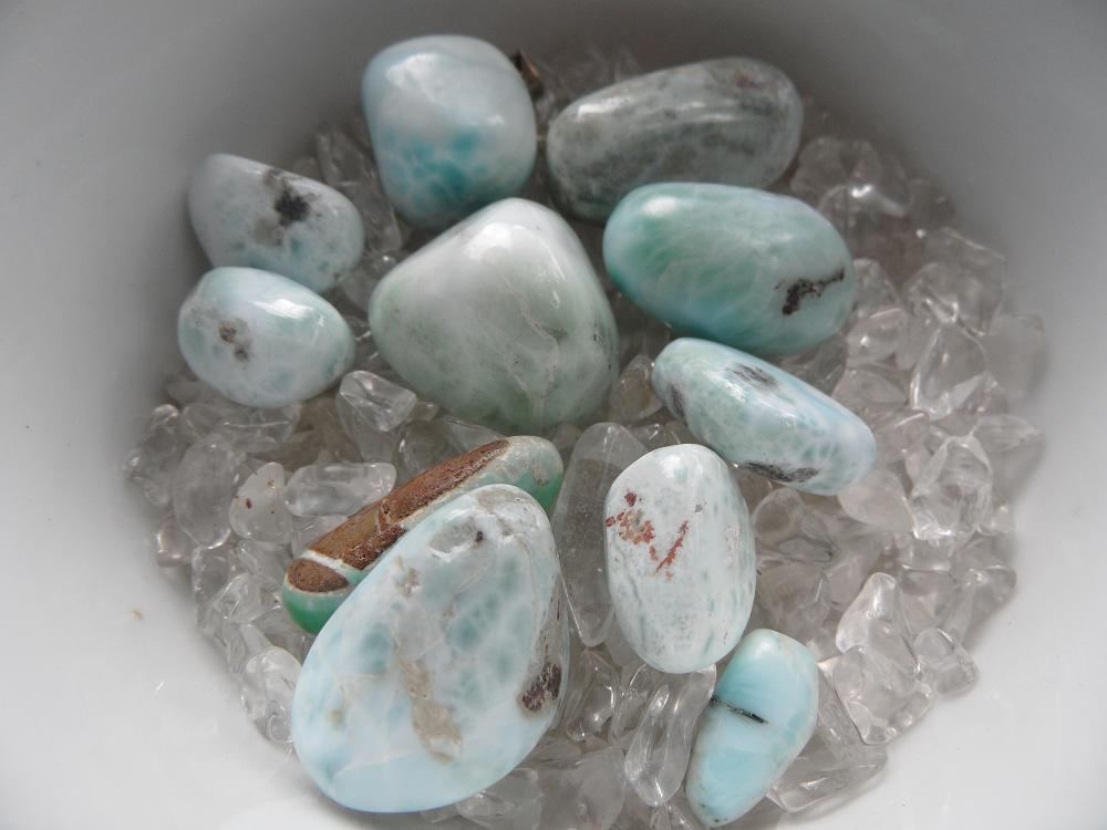 Fluorit ist eigentlich immer dabei, an Rauchquarz, Moosachat und Sodalith kann ich auch nur schwer vorbeigehen.