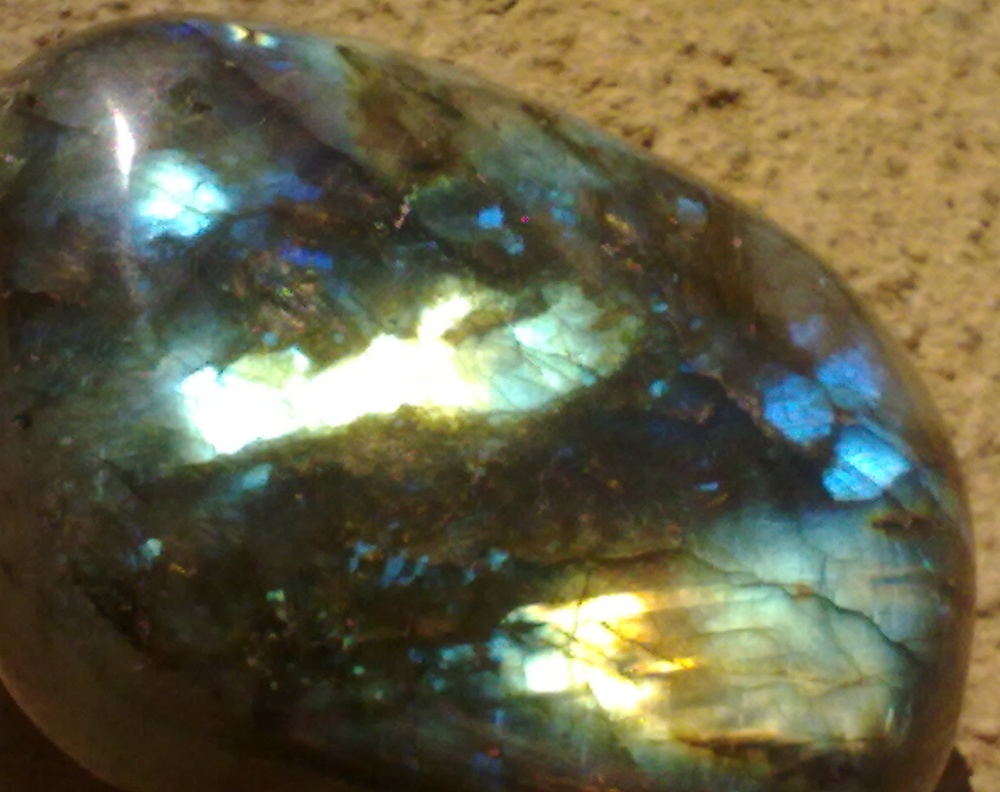 Und ein Labradorit aus Madagaskar, 2 kg schwer und 16,5 cm hoch.