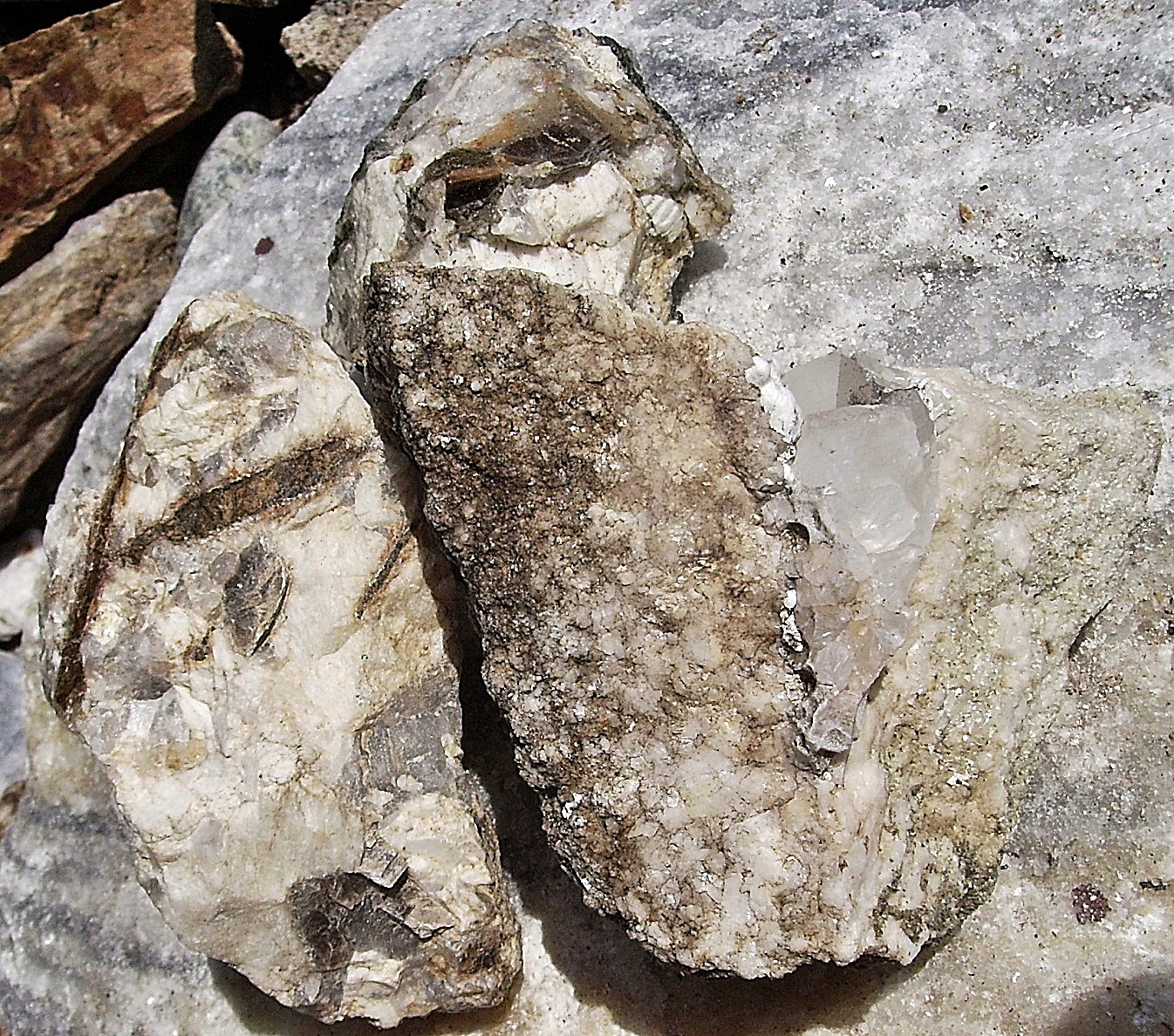 der sich die Mühe gemacht hat das Muttergestein ( Dolomit auch teilw. übergehend in Dolomitmarmor ) zu zerkloppen