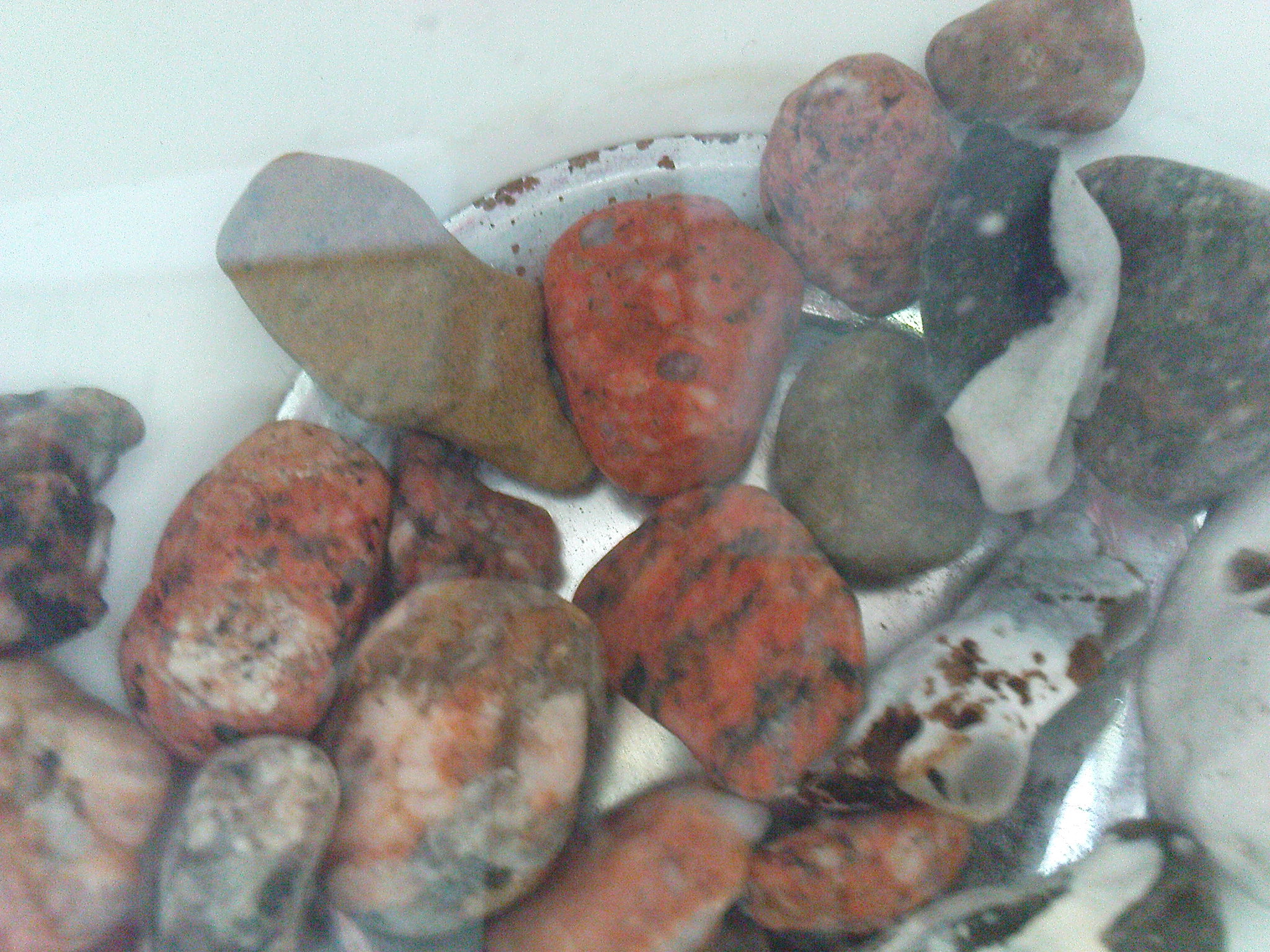 Sind nur ein paar zur Übersicht, die Steine einzeln hab ich noch nicht. Einige von den ganz kleinen sind hier auch schon im Runen-Thema gelandet. Aus denen hab ich mir ein Orakel gemacht. Die Steine haben teilweise ganz tolle Farben, die man am Besten sehen kann, wenn sie nass sind, deshalb auch ein paar "Schwimm-Bilder" ausm Waschbecken...
