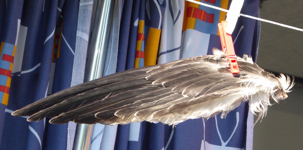 Es ist der Handflügel einer diesjährigen Herings- oder Silbermöwe.