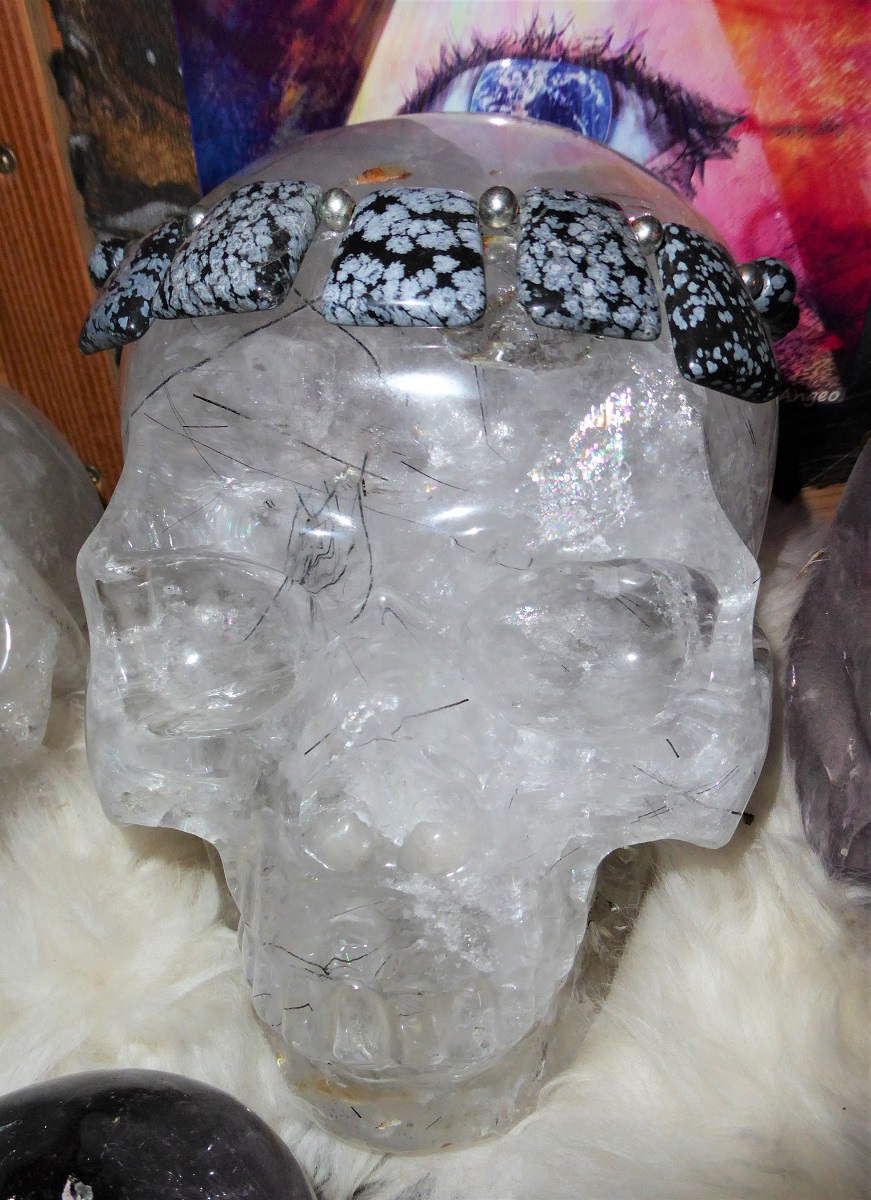 Schneeflocken-Obsidian Splitterketten, Figur, Trommelsteine und Rohstein