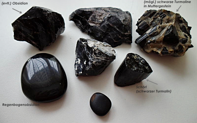 Schörl sehe ich auch (auf dem Foto mit den schwarzen Steinen)