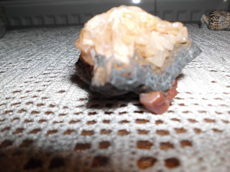 es ist Vanadit auf schwarzen Glaskopf,der wiederum auf Baryt sitzt.