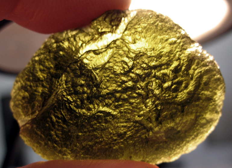 Die Chinesen habe vor Jahren damit begonnen, Moldavite aus grünem Flaschenglas herzustellen. Das Glas wird eingeschmolzen und mit "Verunreinigungen" versetzt. Und jetzt kommt der eigentliche Trick: Man hat aus sehr vielen echten Moldaviten Gussformen hergestellt.