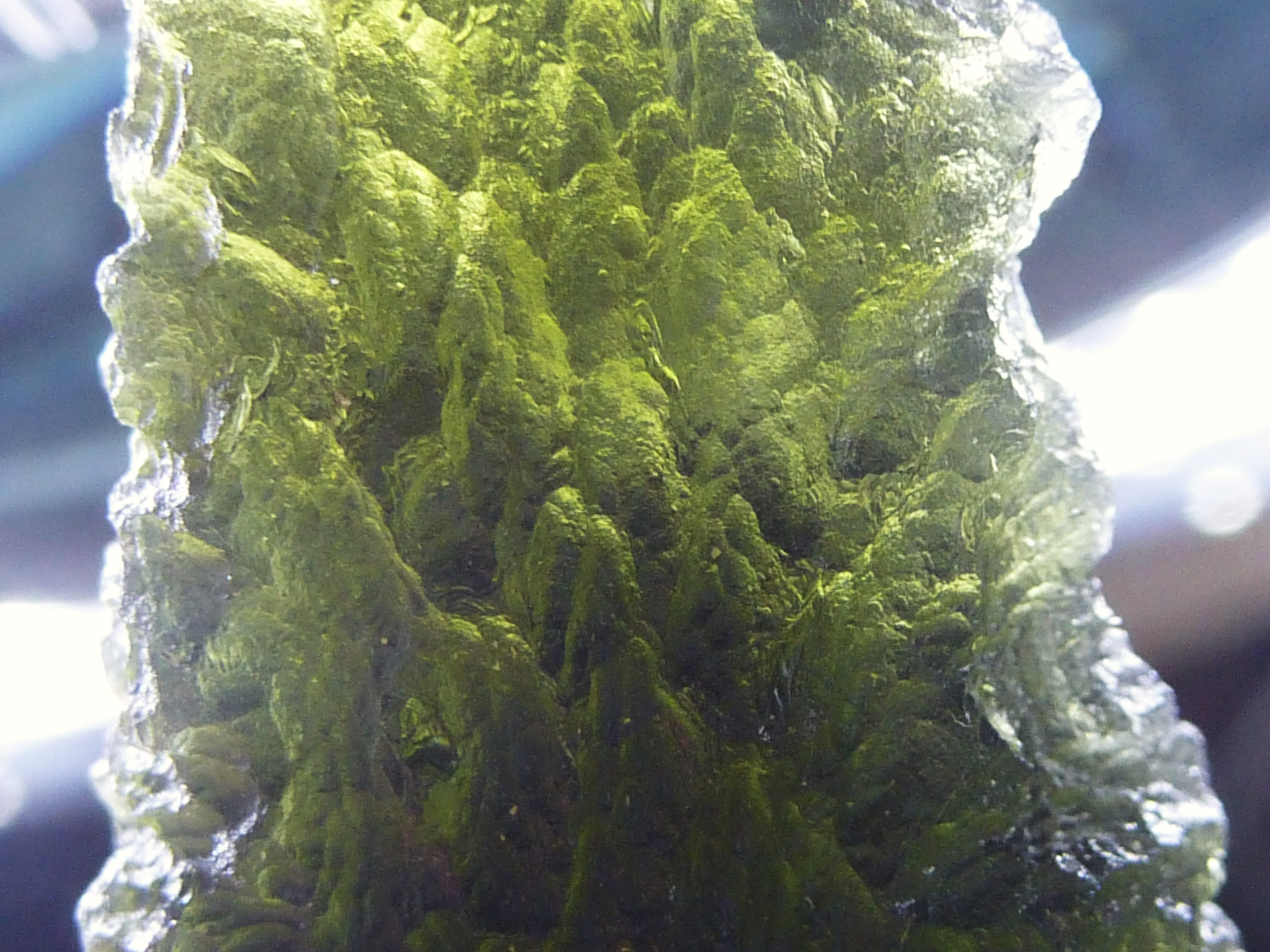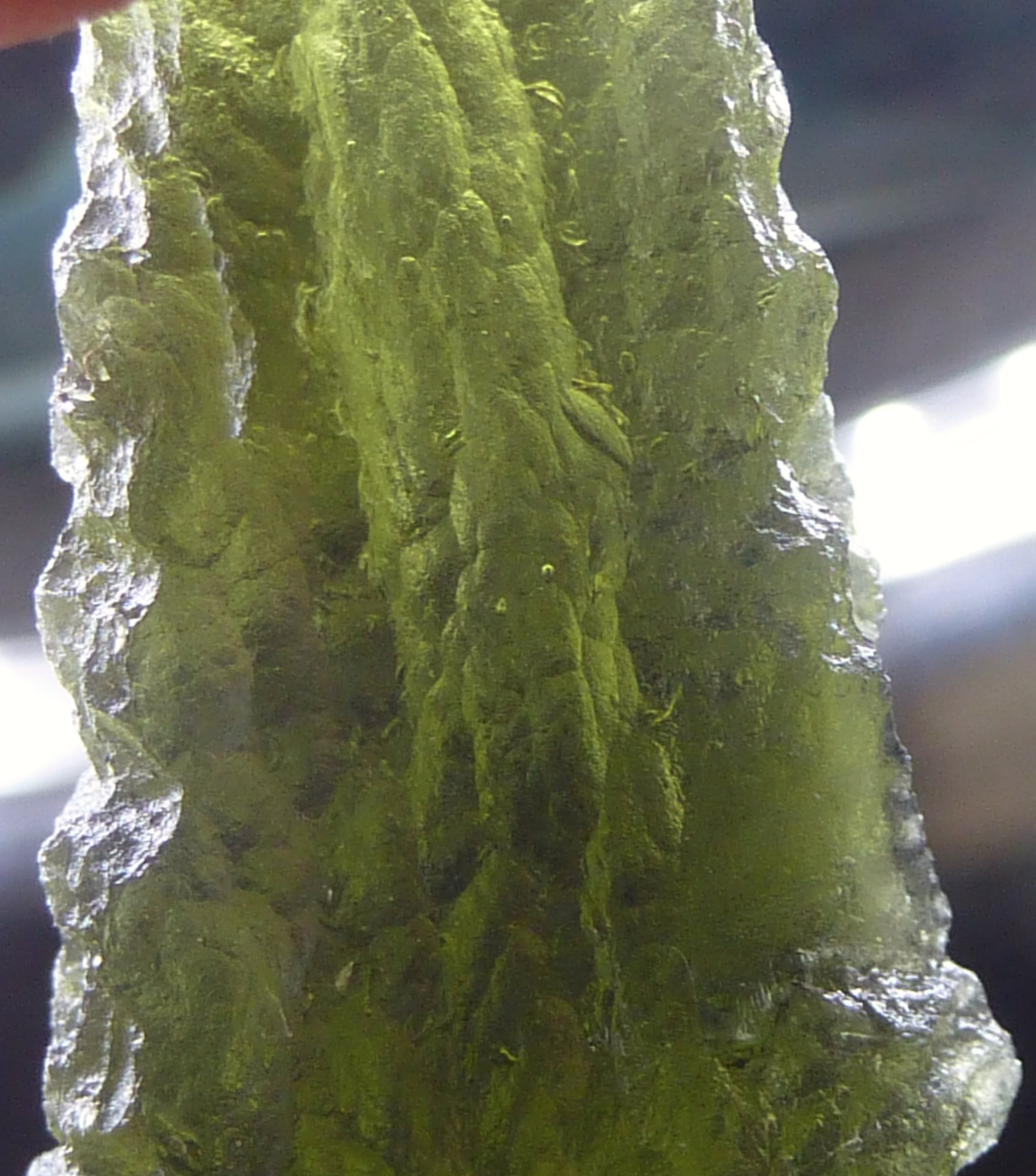 nur anhand von Photos wird das sehr schwierig. Normalerweise schaue ich mir Moldavite im Gegenlicht unter dem Mikroskop an: 40fache bis 100fache Vergrößerung. Dann sieht das geübte Auge recht schnell Anhaltspunkte für Echtheit bzw. Fälschung. Manchmal ist es aber selbst unter dem Mikroskop schwierig, da die Chinesen immer "bessere" Moldavite machen.