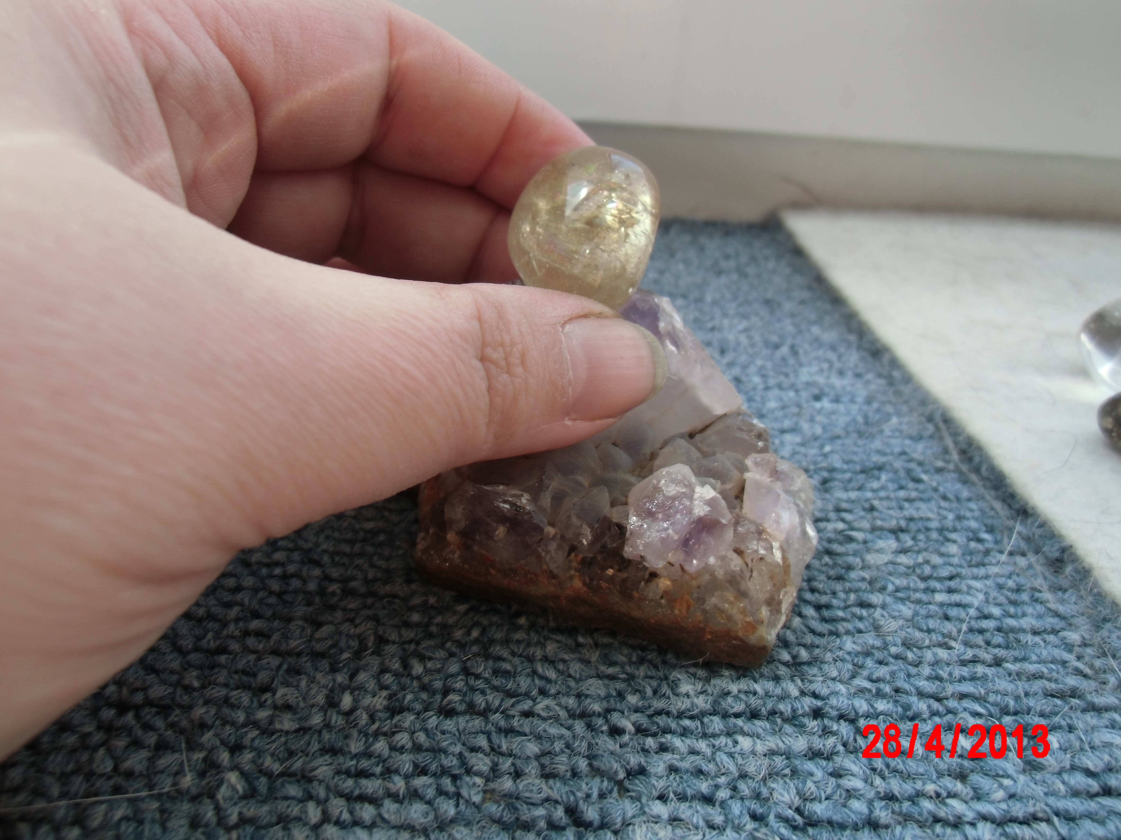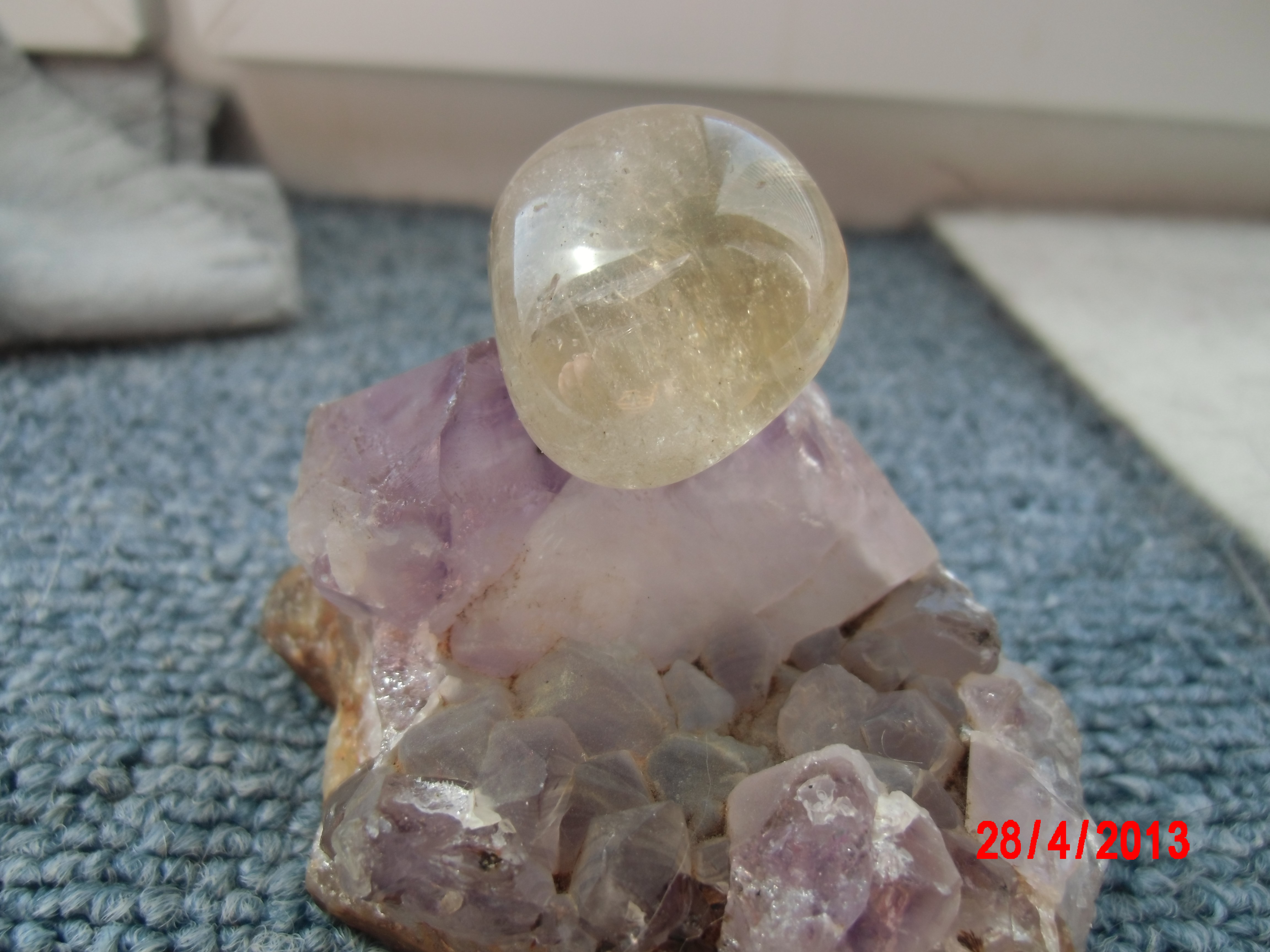 Hallo auch dieses Schätzchen kam vor kurzem zu mir aber was ist es gebranter Amethyst oder Citrin oder was ganz anderes.