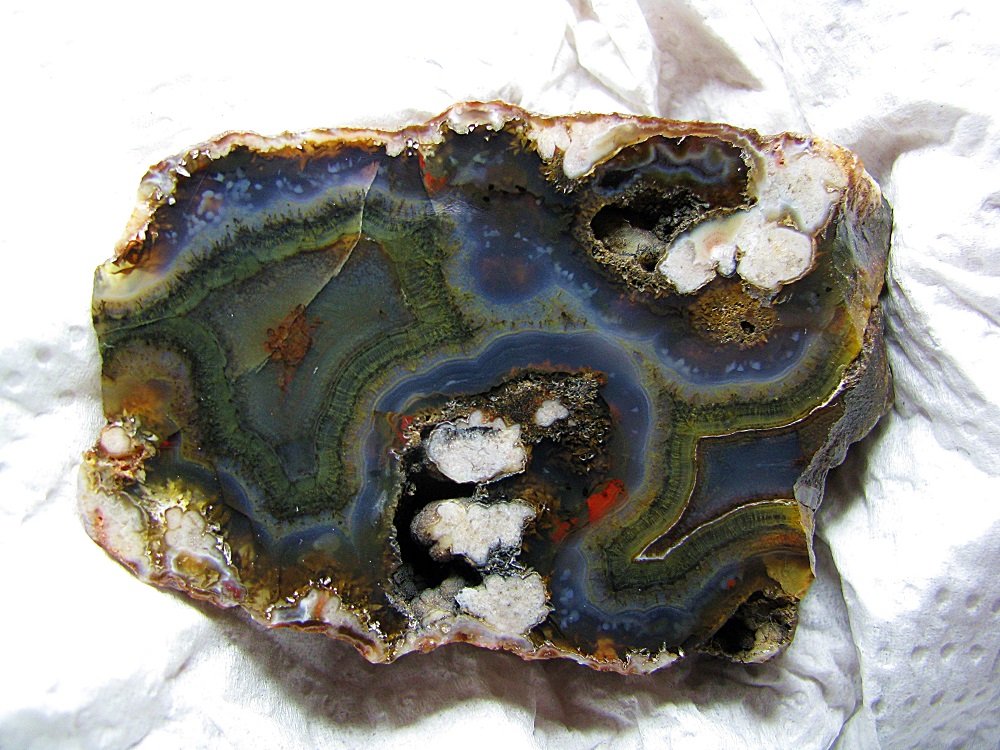 heute hab ich neben meinen neuen Wahambas ein Lot Südamerikaner bekommen zu einem soooooooooooooooooooo günstigen Preis!!! Ich dachte ja erst, für DEN Preis bekomm ich eher Drittklassiges - aber ich war absolut perplex, als ich mein Päckchen auspackte... Der Tag hatte nicht so toll begonnen und nach Mittag wollte ich mir dann meinen Liegestuhl an meinen Lieblingsplatz tragen, um dort etwas zu schmökern und die Seele baumeln zu lassen - als der Postbote mit einem schweren Päckchen auf mich zukam... An meinem Lieblingsplatz hab ich dann all die schönen Schätze ausgepackt. Alle Stücke mehr oder weniger handfüllend... Leider war das Sonnenlicht nicht ganz so perfekt für die spiegelnden Flächen der anpolierten Achathälften... So musste ich warten, bis es dunkel ist und wisst Ihr was? Meine Lupenlampe hat das perfekte Licht zum Fotografieren von Steinen und Mineralien... Aber ich will Euch nicht länger auf die Folter spannen... Okay, als erstes ein paar schöne Stücke aus Atuel, Argentinien. LG Jutta