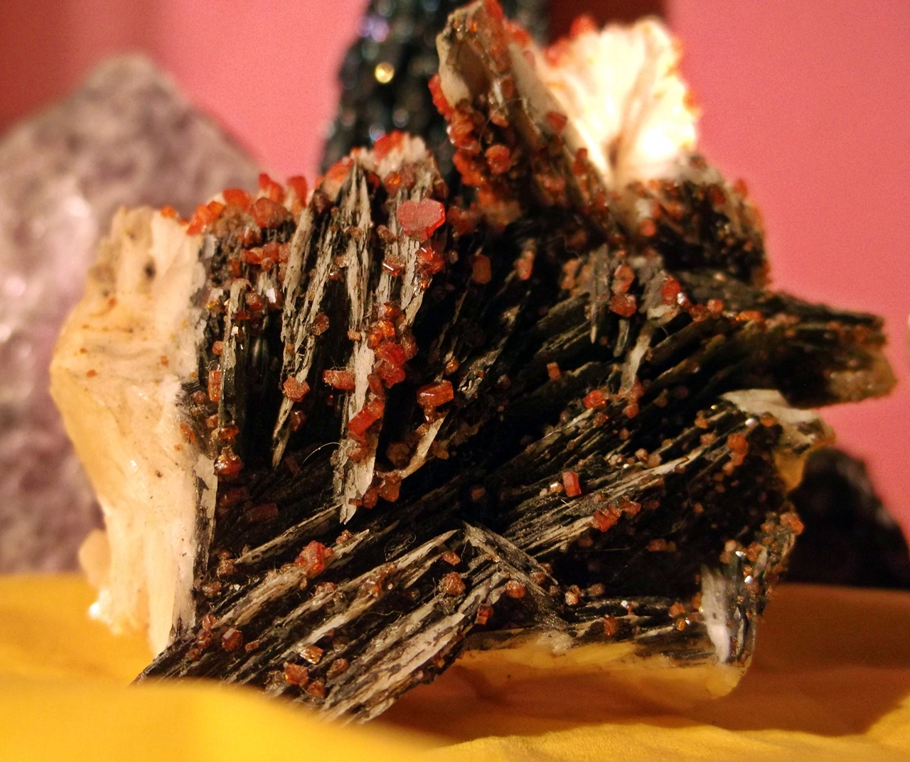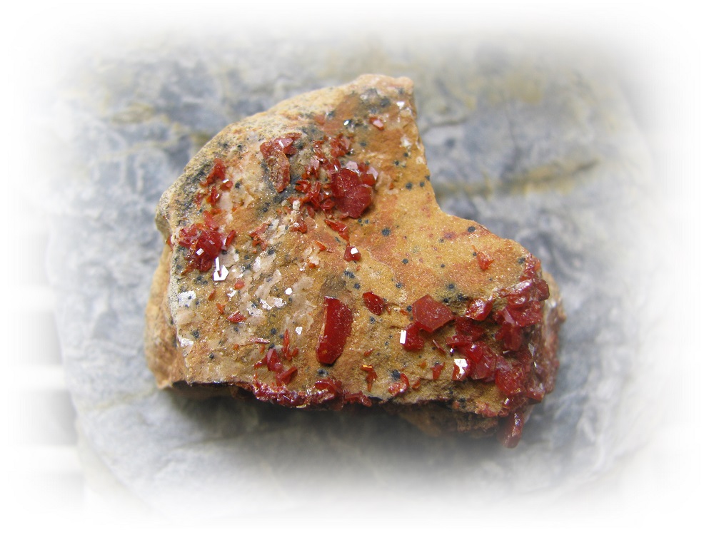 Und ich pack dann auch noch mal einen Vanadinit auf Baryt mit drauf, einfach weil ich ihn wunderschön finde.
