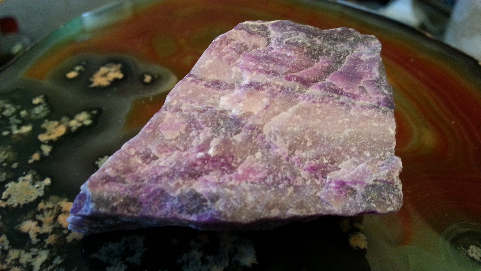 Nun der letzte für heute, ein Sugilith Rohstück. Es wiegt 102 Gramm.