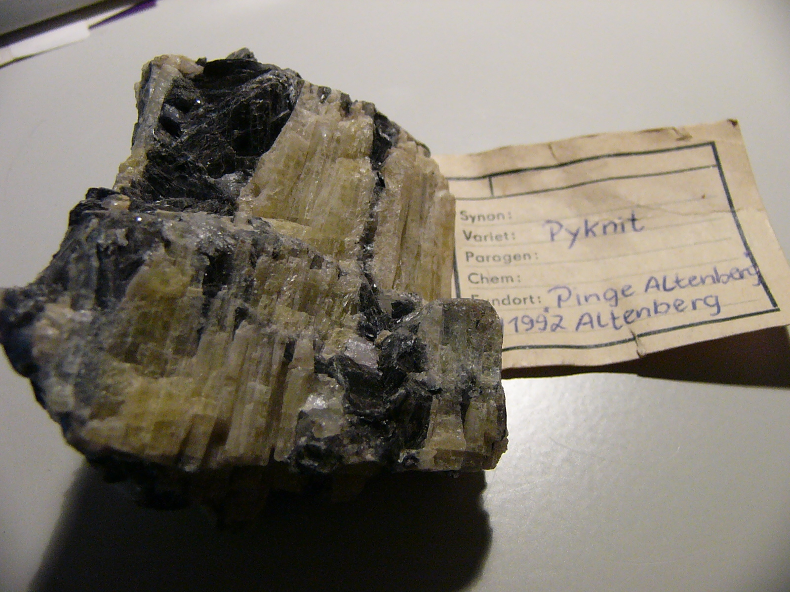 Pyknit ist ja das Gestein und es besteht immer aus Quarz,Biotit und Topas.