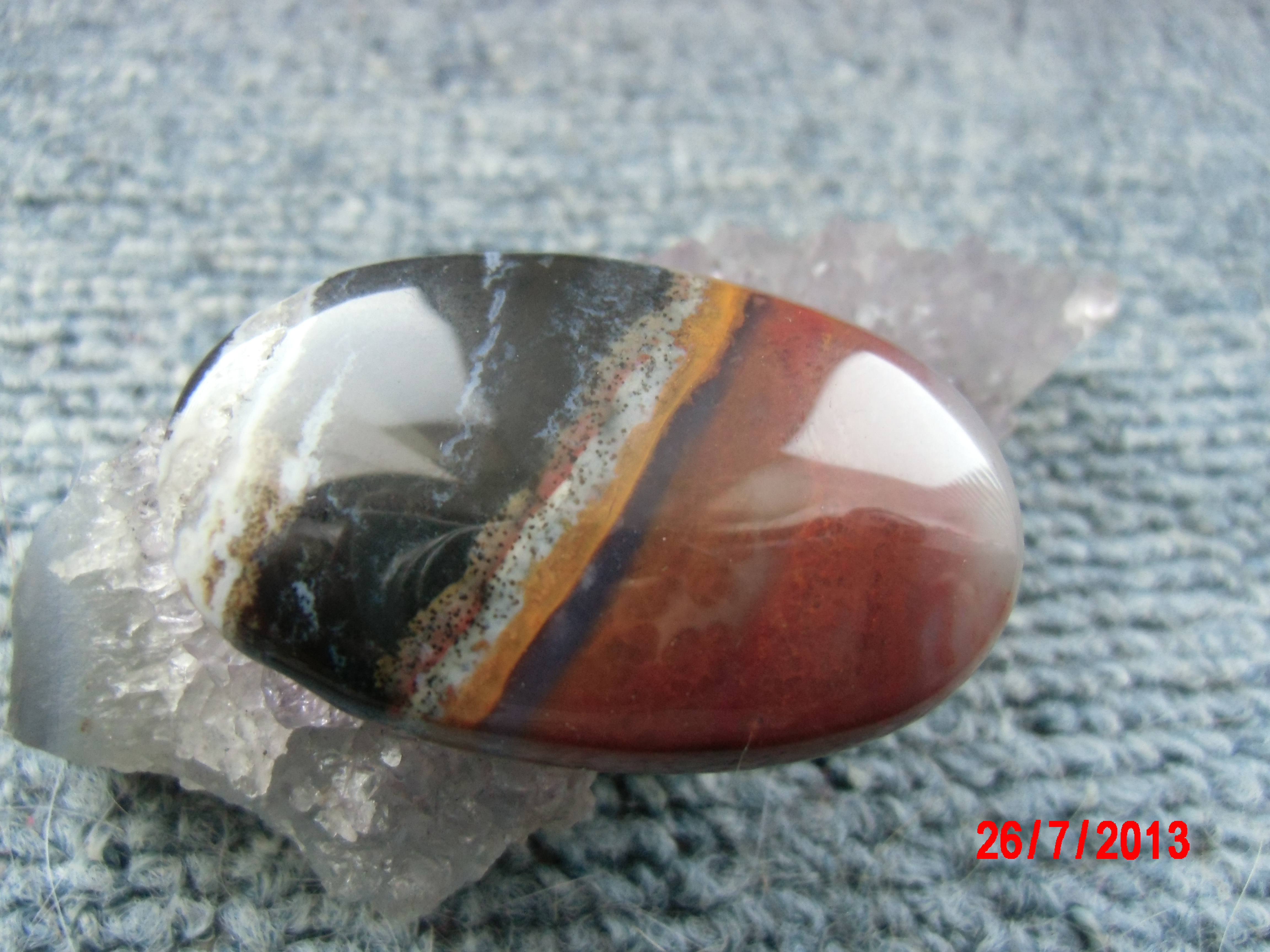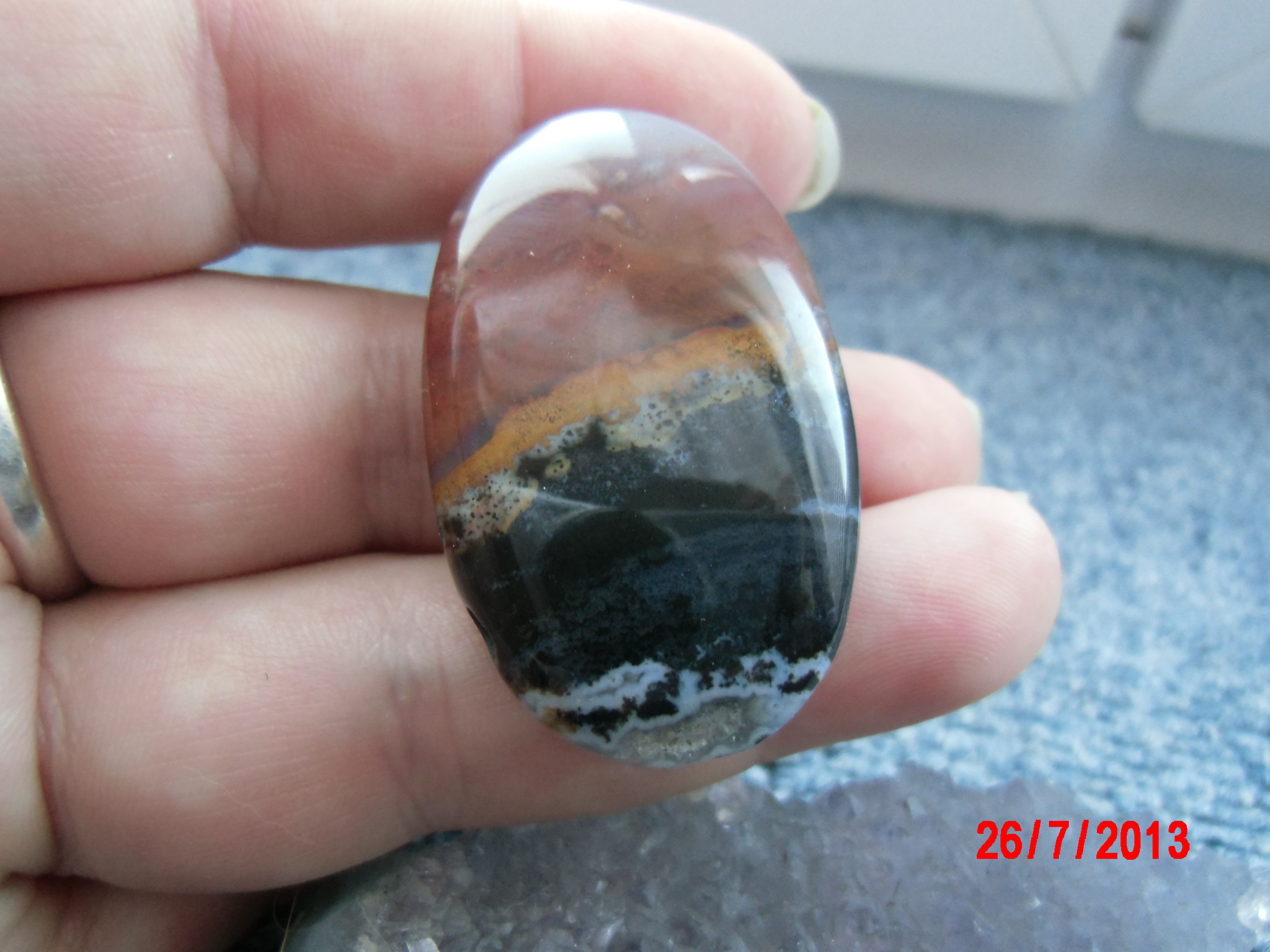 es ist ein recht hochwertig getrommelter Achat,Jaspis oder Hornstein.