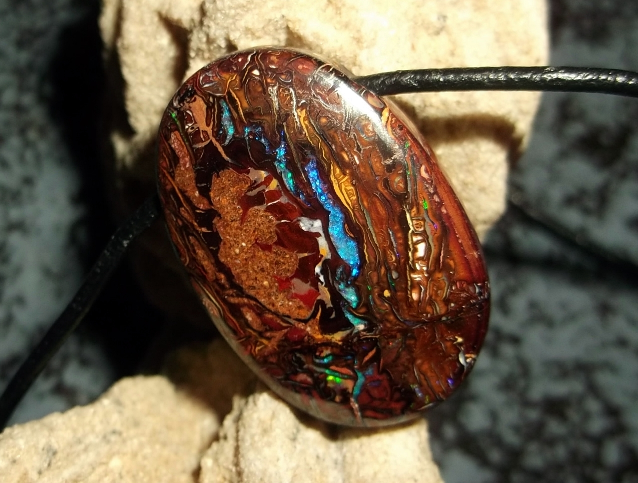 Sorry Leute, das ist kein Boulder Opal, diese australischen Opale werden als Boulder- oder Queensland-Matrix bezeichnet.