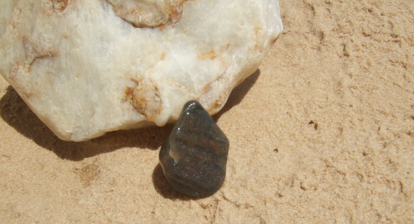 Habe mir mal Aventurin im Lexikon angeschaut, sieht aber irgendwie anders aus. Der hier hat ähnlich dem Gneis, mehrere Schichten, wobei die Oberste quarzig ist mit Glimmer, ist aber von der Konsistenz her glatter als Gneis.