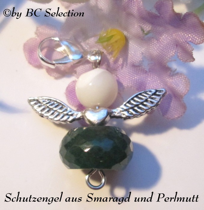 Nachdem vor ein paar Tagen der Smaragdanhänger geliefert wurde, kamen heute auch die fünf Smaragde für die Kette. Da ich für die Kette nur vier Steine brauchte, machte ich aus dem fünften Stein einen Schutzengel-Anhänger