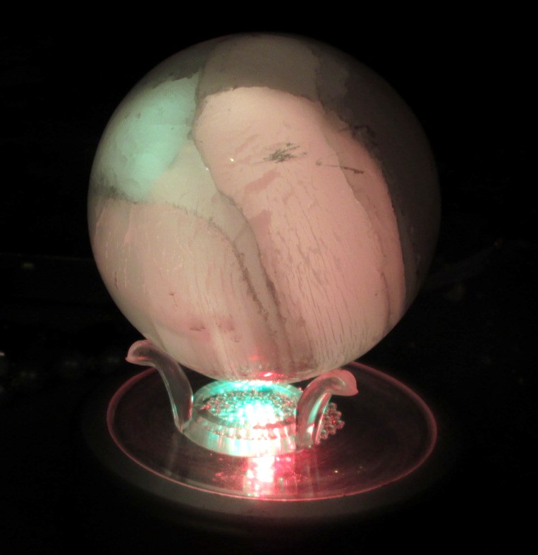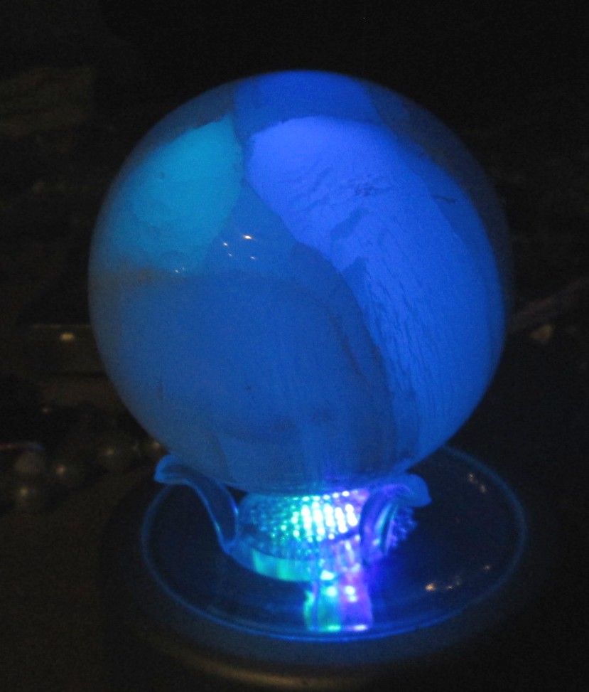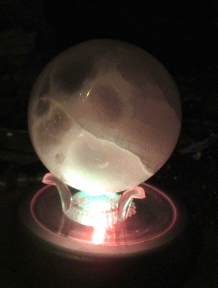 Ich habe meine neue Selenitkugel ein bisschen durchleuchtet - und das ist dabei herausgekommen.