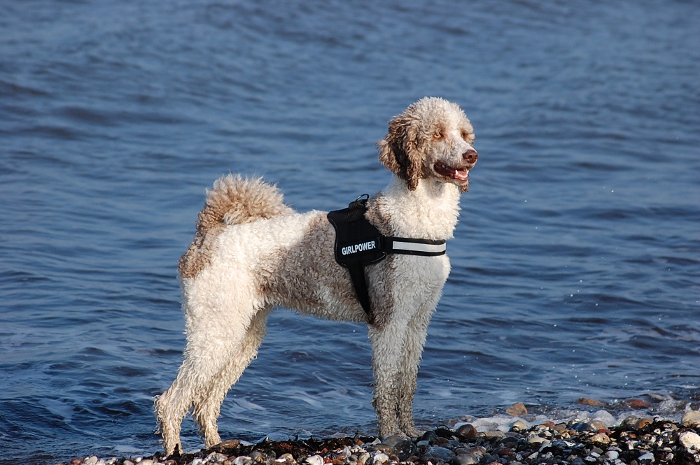Die Harlekin-Königspudel sind auch eher selten, meist sieht man einfarbige Pudel.