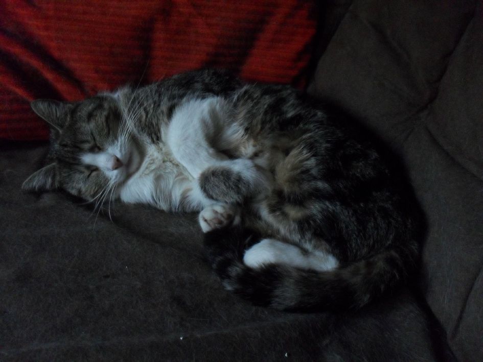 Sie hat gestern dann noch eine Weile total platt gelegen und ist nur kurz aufgestanden, um wenige Happen zu fressen. Und sie säuft eher Katzenmilch als Wasser... Wahrscheinlich weil das zugleich Feuchtigkeit bringt, und Energie gibt.