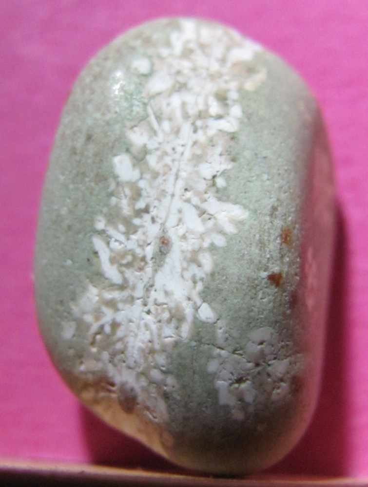 Diesen hübschen kleinen Kerl habe ich schon einige Zeit bei mir liegen, habe aber erst jetzt entdeckt, wie hübsch er ist. Leider habe ich keine Ahnung, was es für ein Stein ist. Vielleicht könnt Ihr da ja mal wieder weiter helfen.