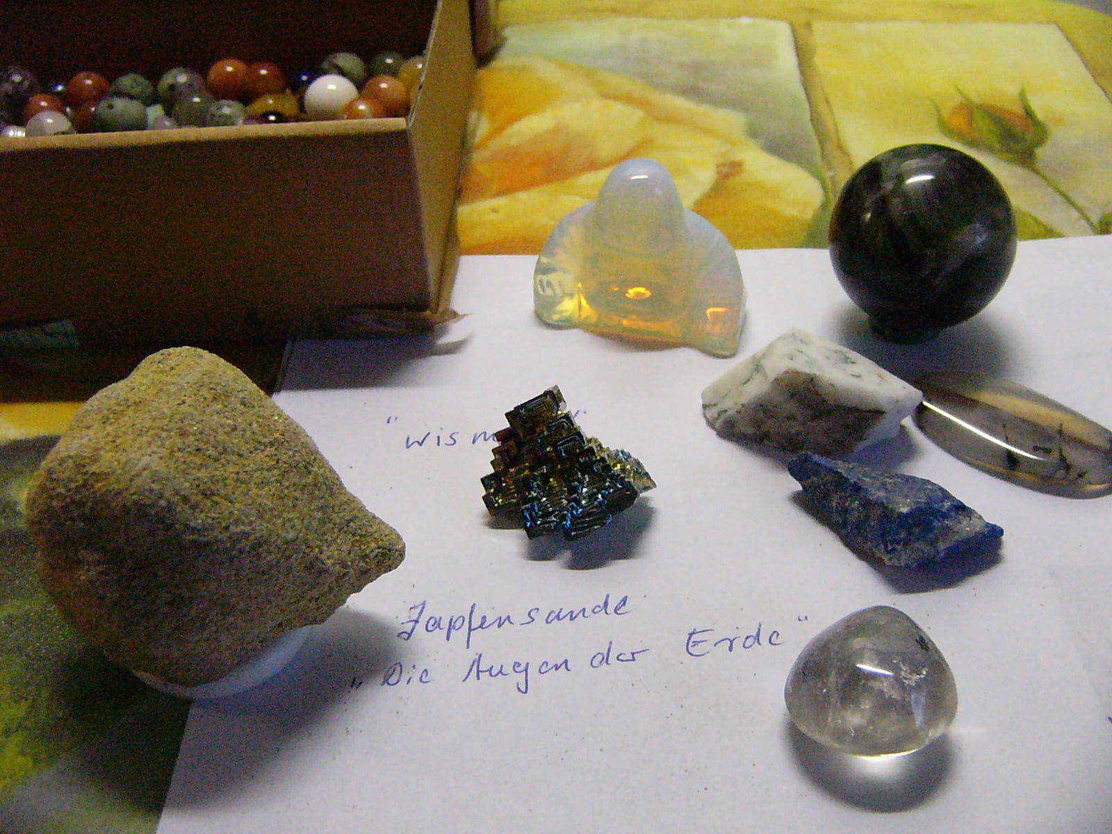 Kettelsteine ,Opalit Budda,Lapis,Baumachat,Montana Achat,Bergkristallanhänger,Flourit Kugel,<br />Wismut und Zapfensande &quot;Die Augen der Erde&quot;
